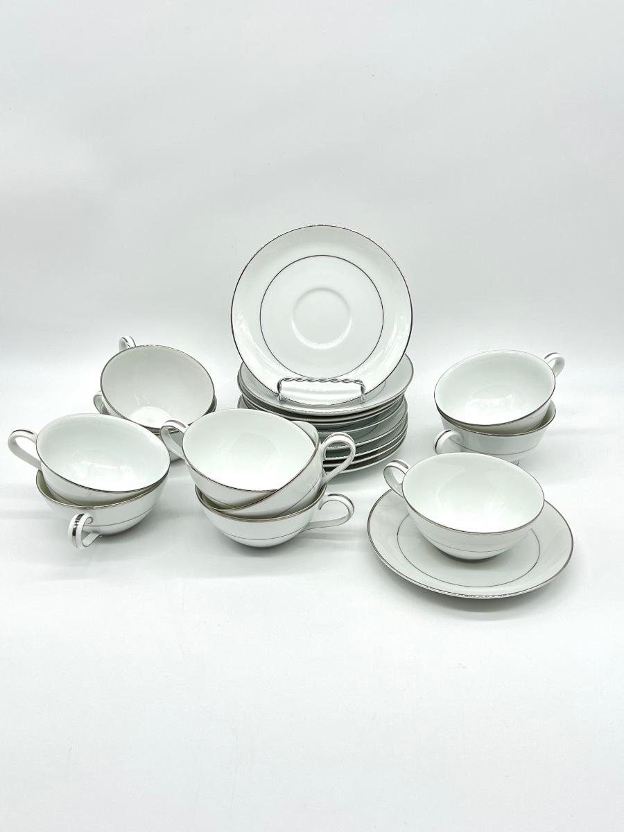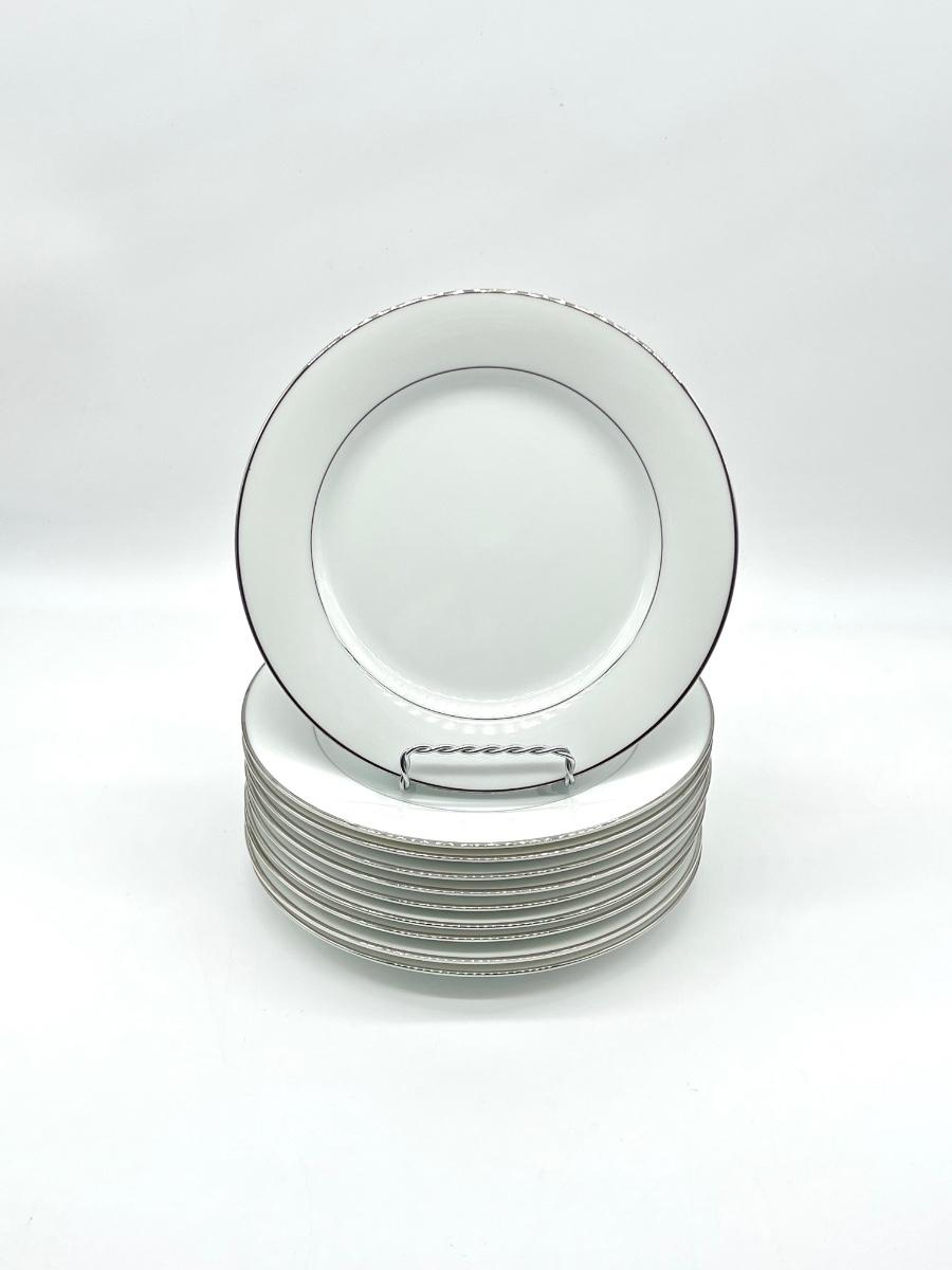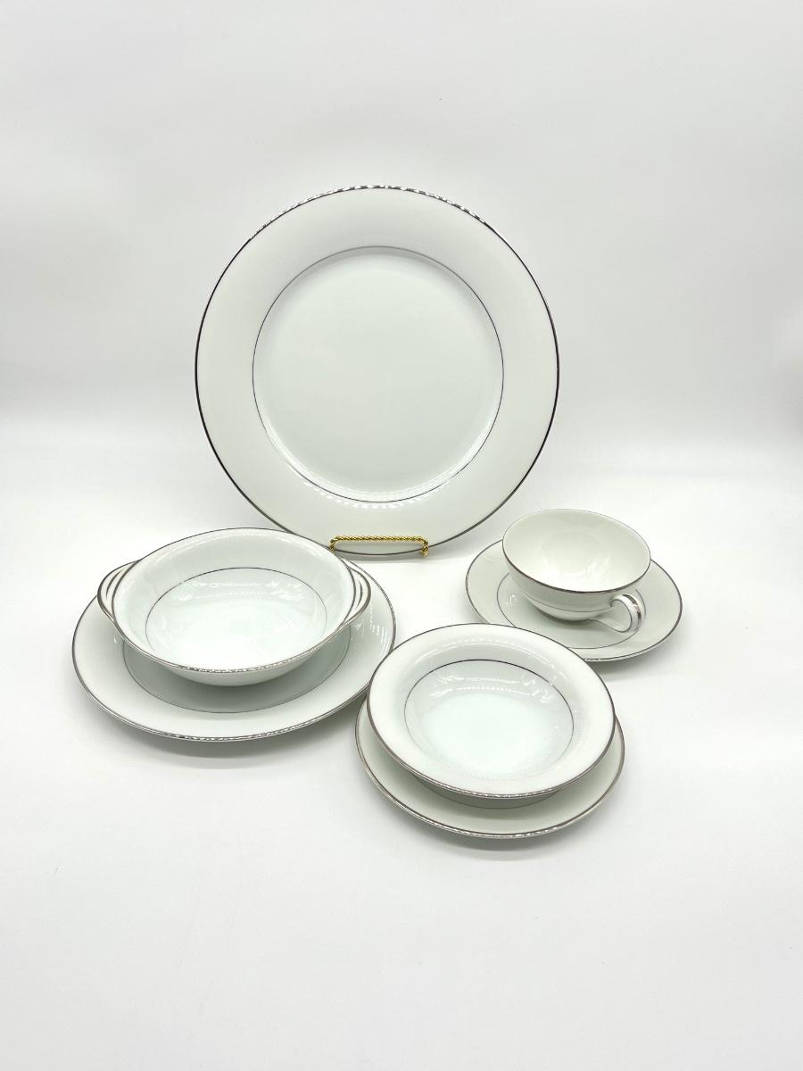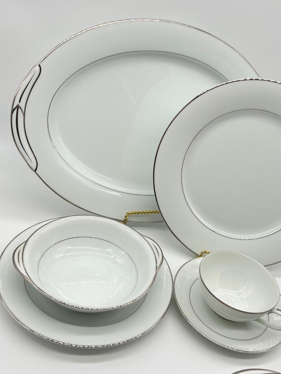 NORITAKE CHINA ~ Derry ~ Platinum Rim ~ (7) Piece Plate Setting ~ Service For Ten (10) & Three (3) Serving Dish Set