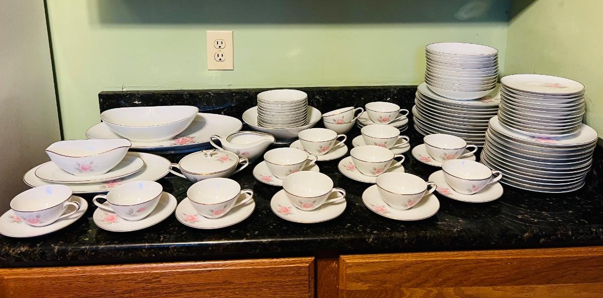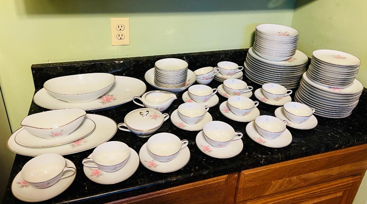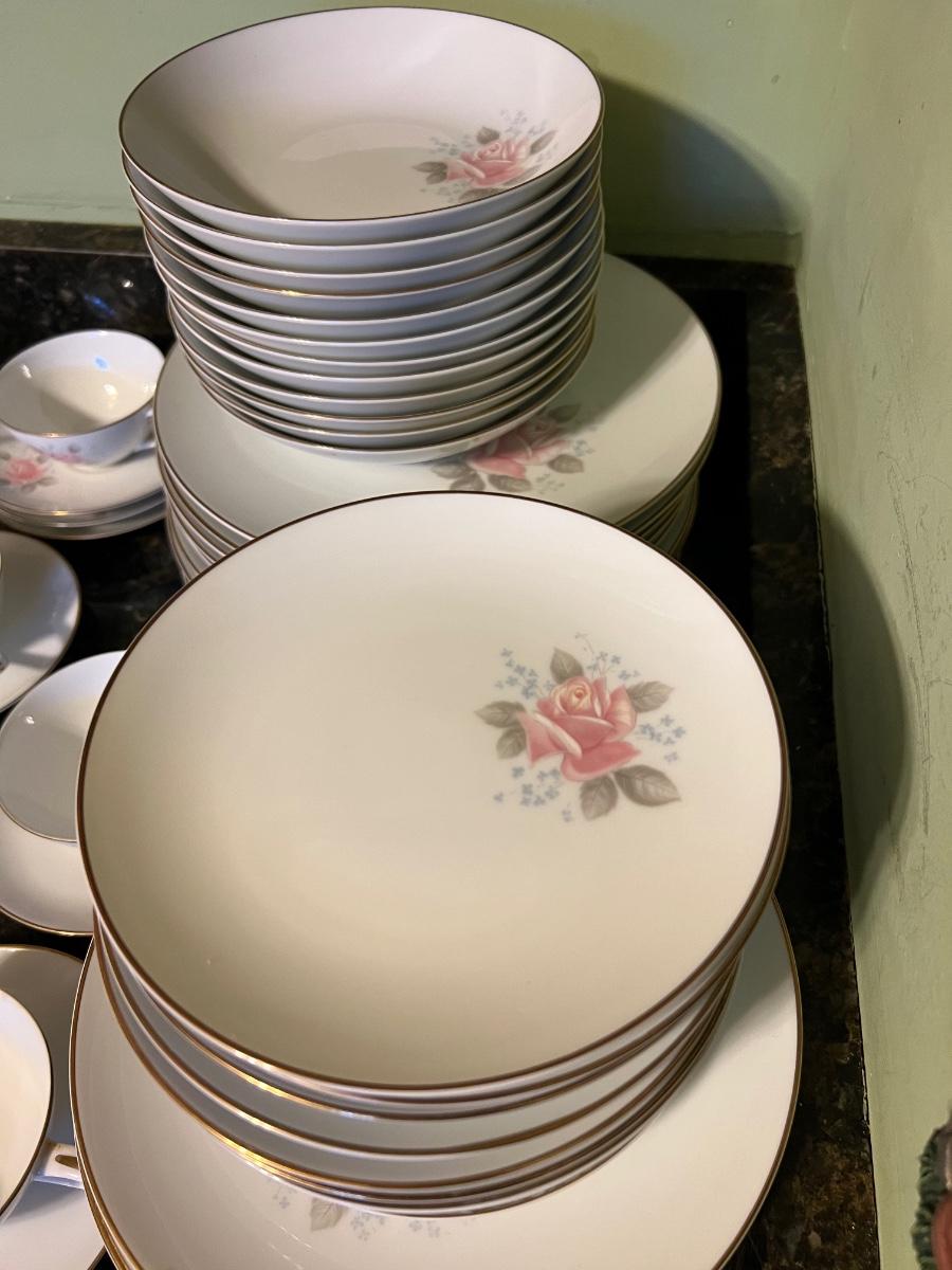 NORITAKE CHINA JAPAN ROSEVILLE 12 place setting. No chips or cracks noticed.