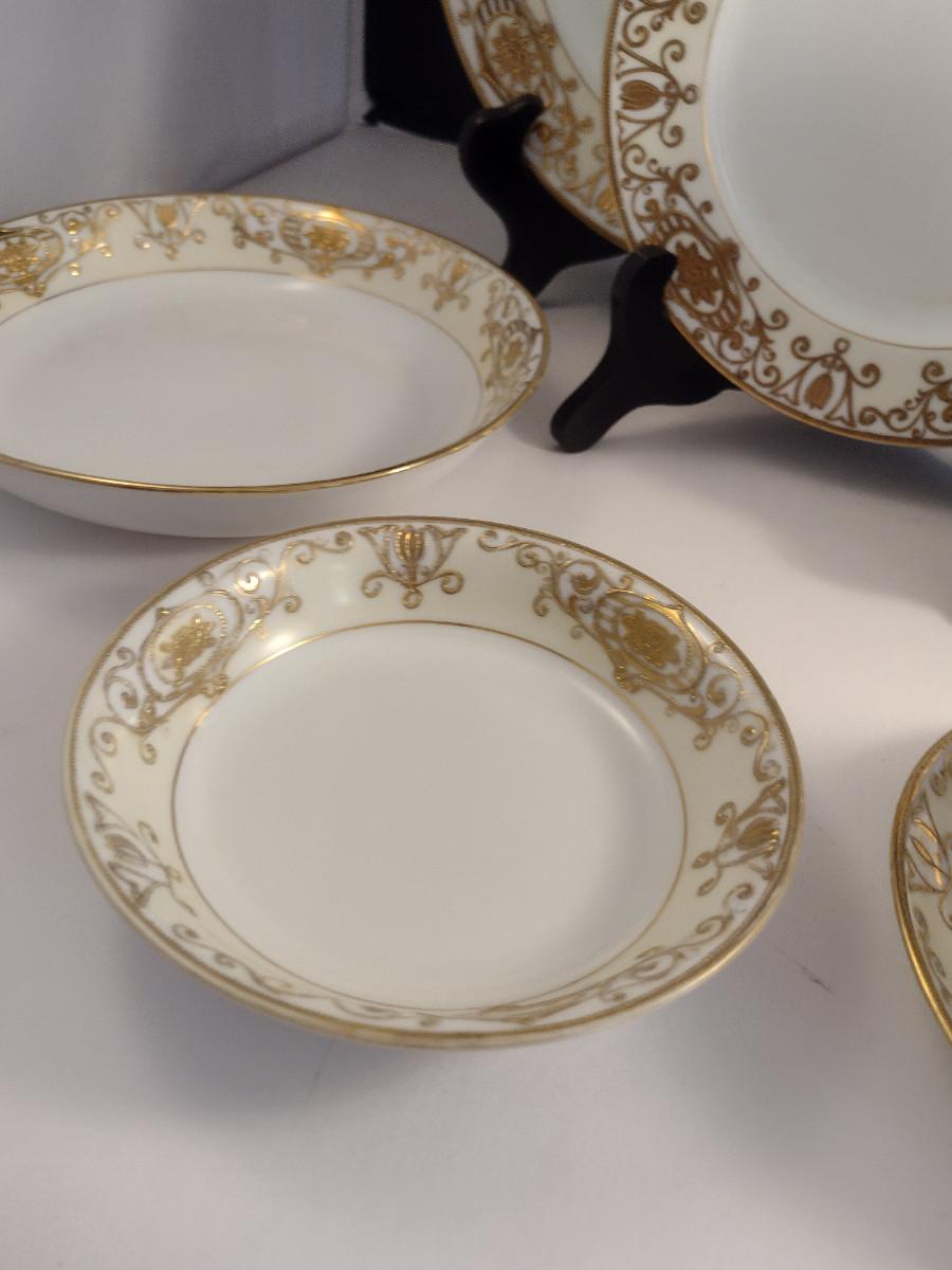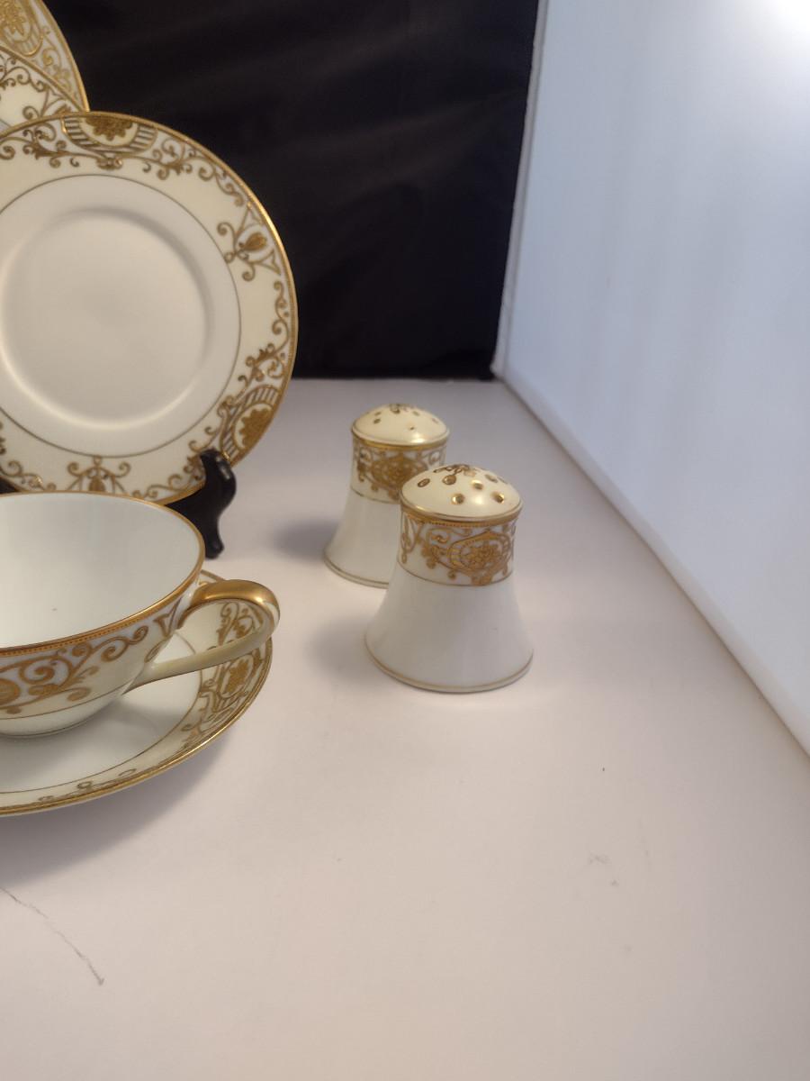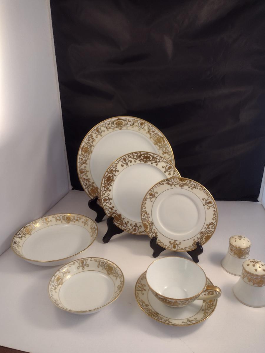 Noritake 'Christmas Ball' (16034) Dinner Ware- Eight Place Settings. Each includes: dinner plate, salad plate, bread/dessert plate, soup bowl, berry bowl, cup, and saucer. Set also includes one pair of salt and pepper shakers.