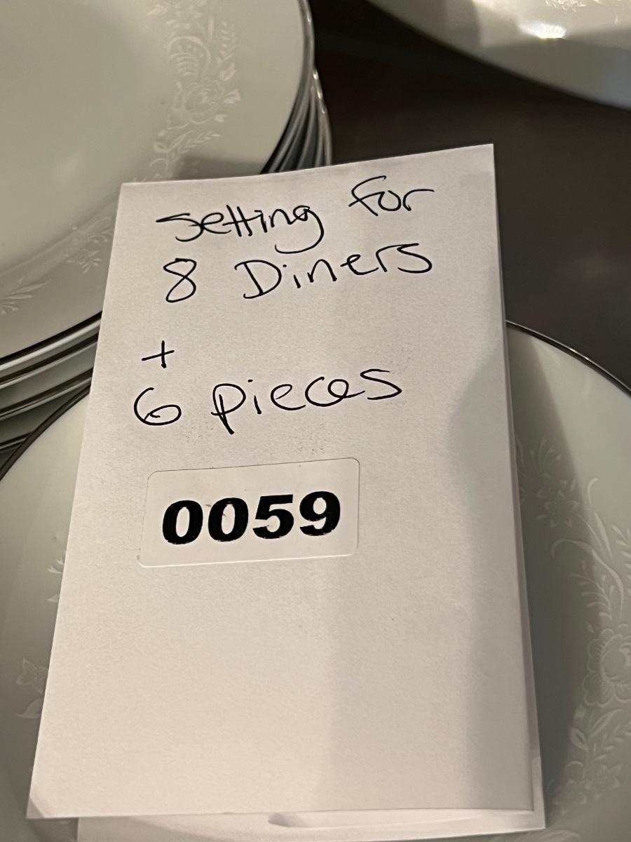 Some small chips to some of the pieces. Table setting for 8. Buying "as is - as found" in this wonderful estate. See ALL PHOTOS for content, condition, & dimensions. NEVER a Buyer's Premium or Credit Card Fee added.