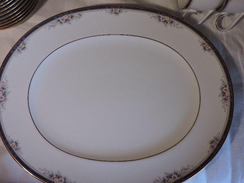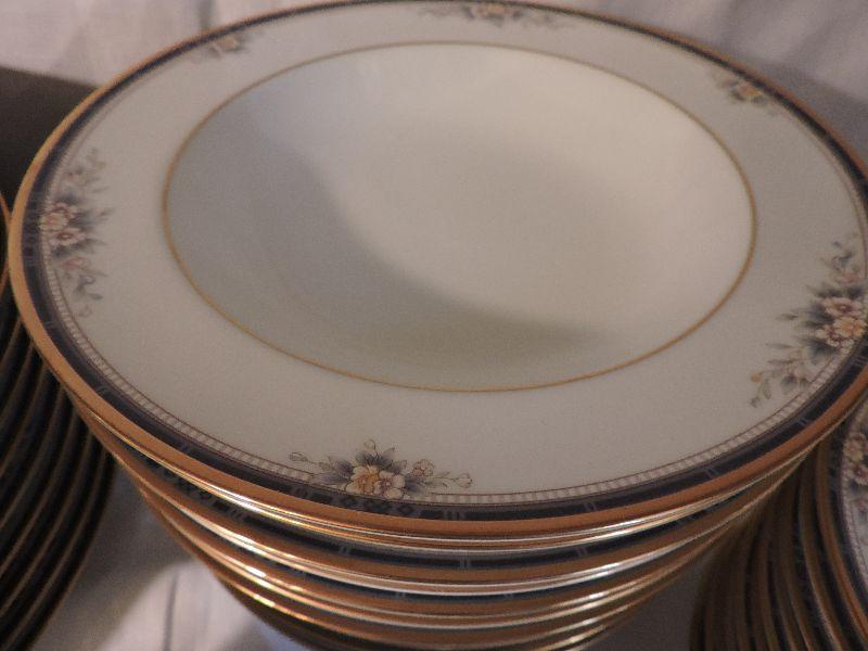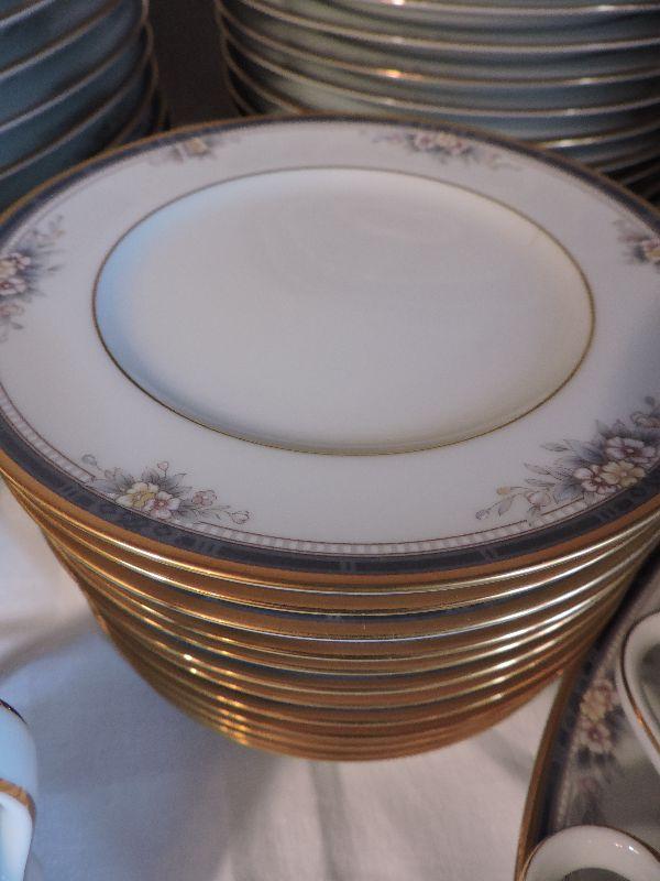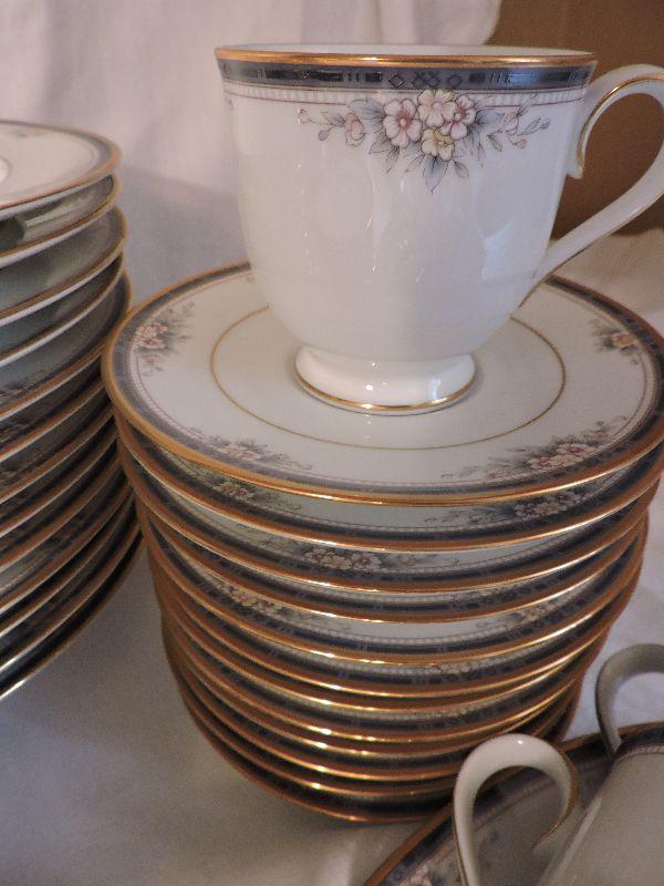 Elegant dinnerware for twelve plus sugar and creamer, and large serving platter. Bring box and help to move. Please read Terms and Conditions before placing a bid. Pick up is Friday, October 25th between 4 and 7, and Saturday, October 26th between 9 and 1. Props included in photos are not included in listing. All measurements are approximate. Comes from home with cats.