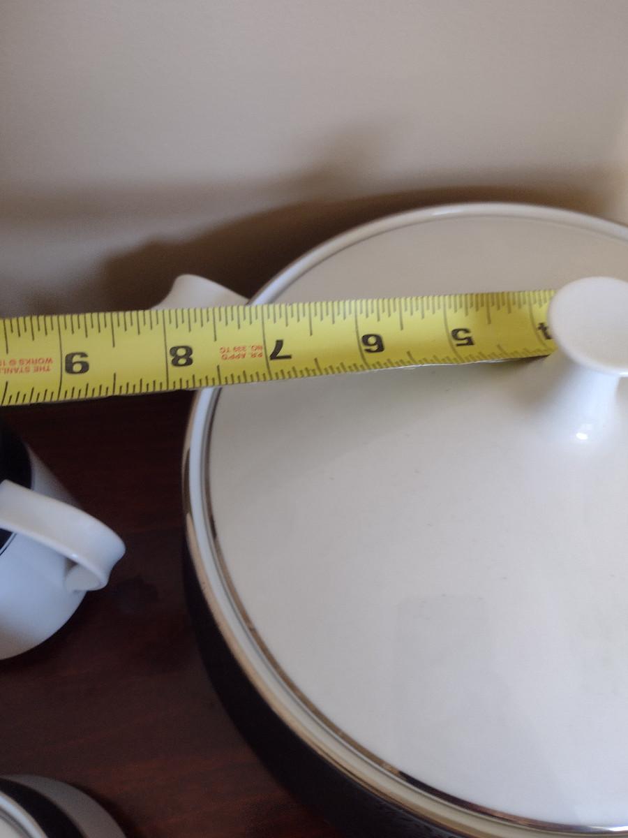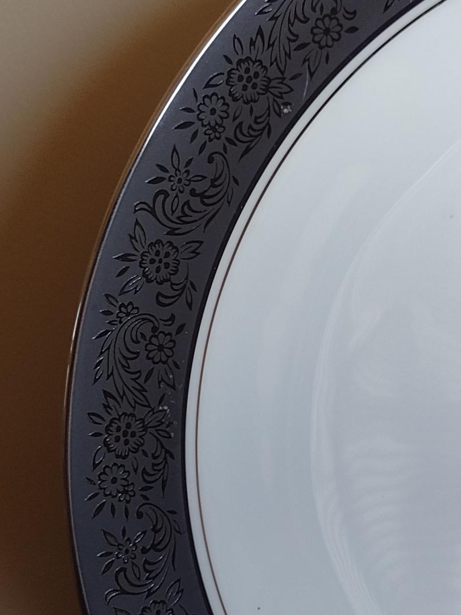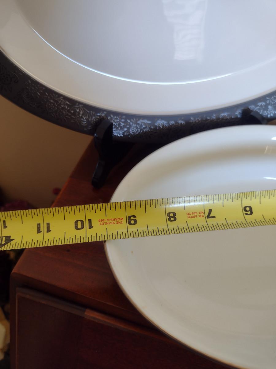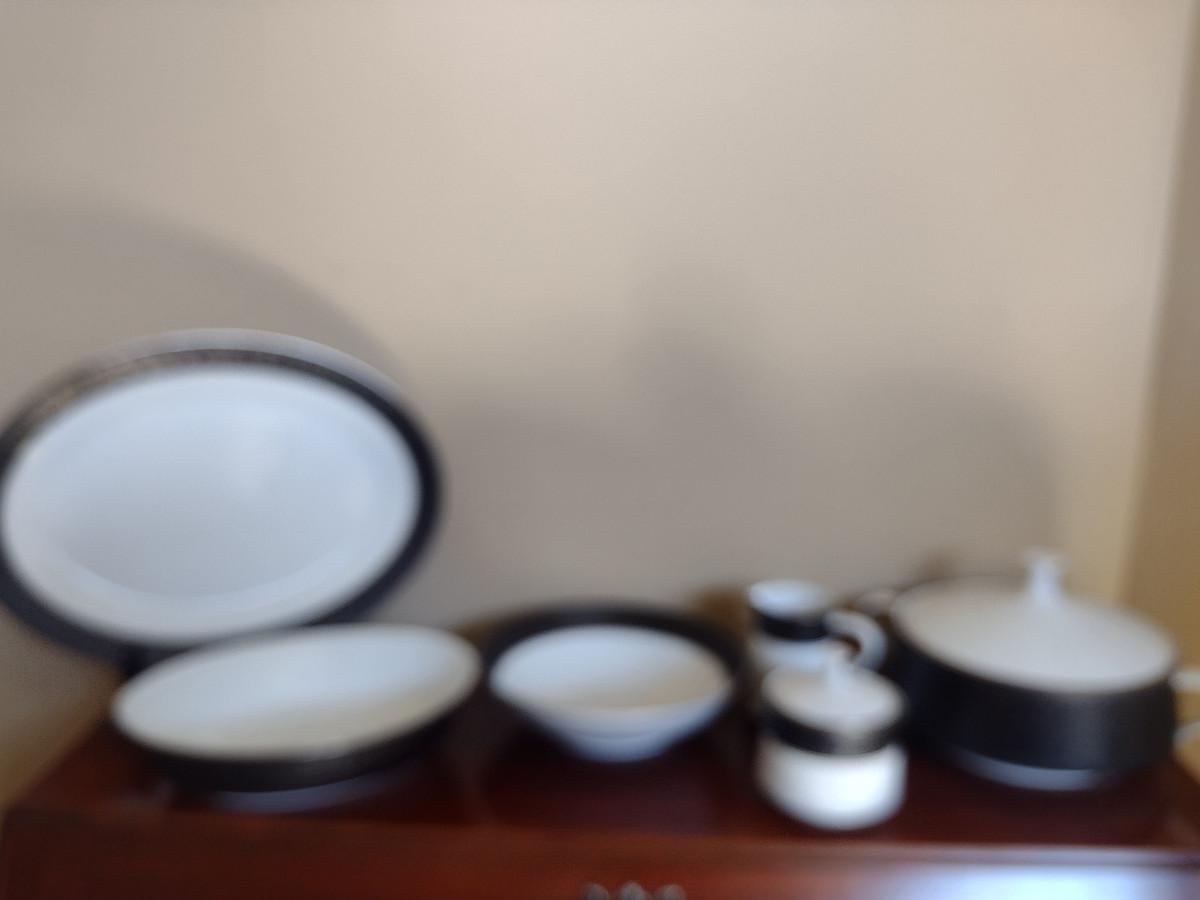 Noritake Dinnerware Set- Mirano Pattern- Approx 38 Pieces. Includes dinner plate, salad plate, cup, and saucer- 8 of each. Also, platter (14")- 1, oval vegetable bowl (9 1/2")- 1, round vegetable bowl (8 3/8")- 1, covered vegetable bowl (8 1/4")- 1, creamer and sugar. All are used, but appear to be in good condition.