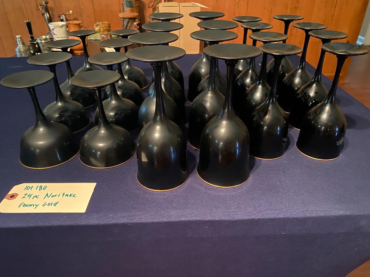 24 Pc Noritake Ebony Gold Stemware Lot