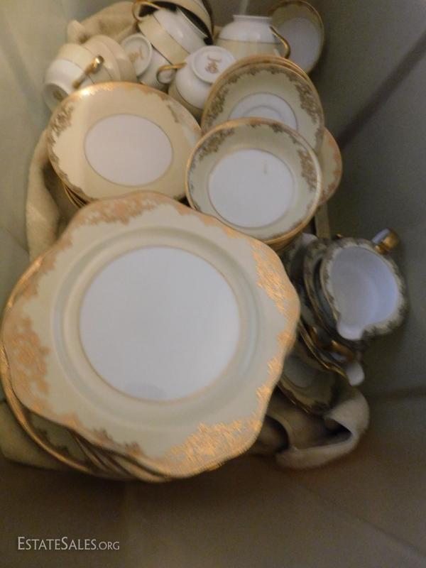 A large collection of Noritake Gold Leaf china set. 73 pieces. 11-5pc place settings plus 9 square plates, 3 cups and saucers, creamer and sugar bowl (no lid). In great condition. Shipping Available