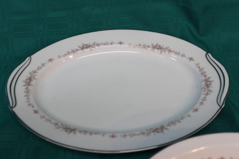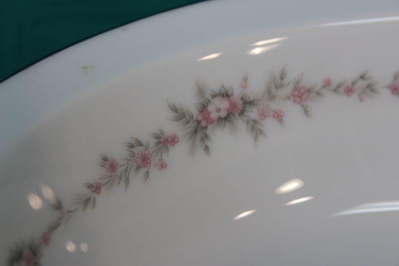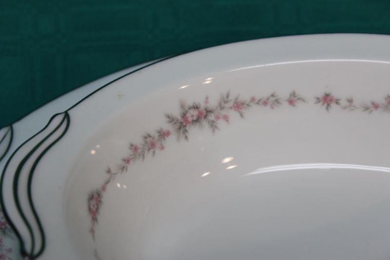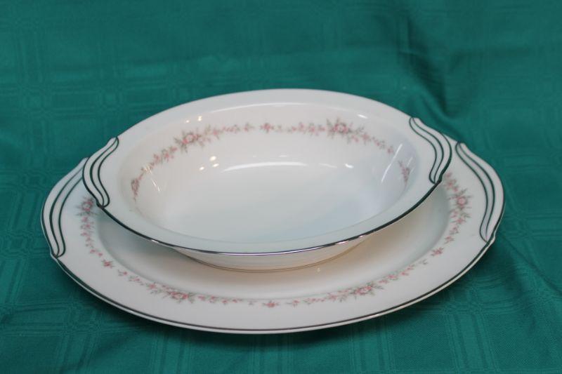 Silver rim Noritake serving bowl with platter. Pink "Rosepoint" flower pattern. No chips.