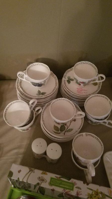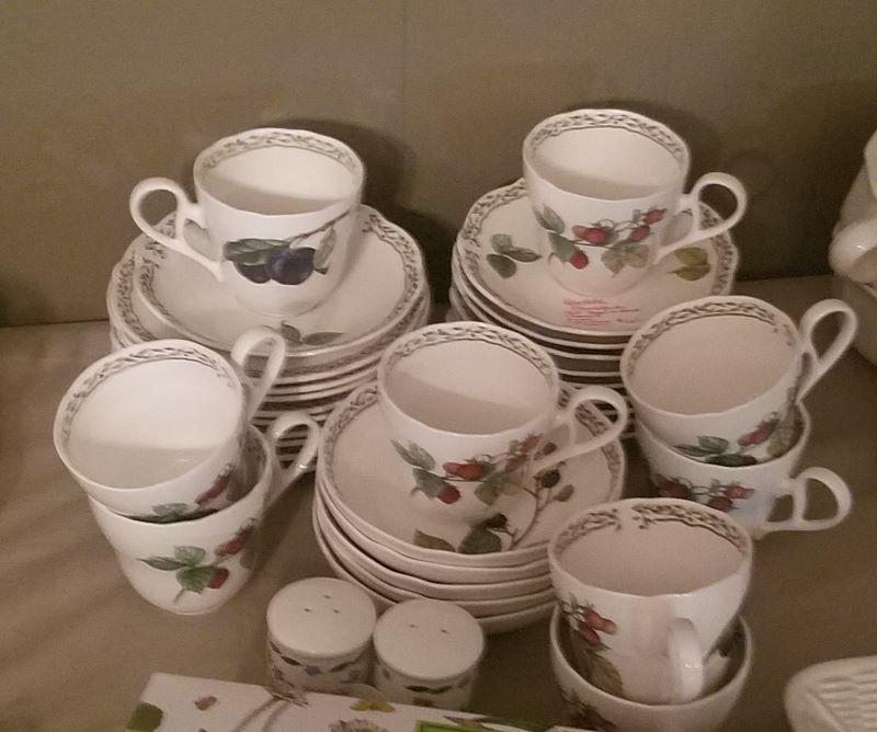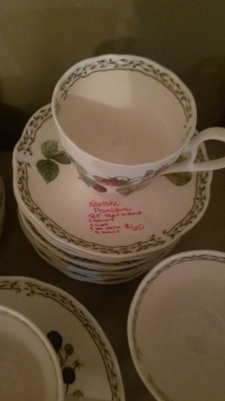 11 saucers, 9 cups, 9 small plates, 5 bowls