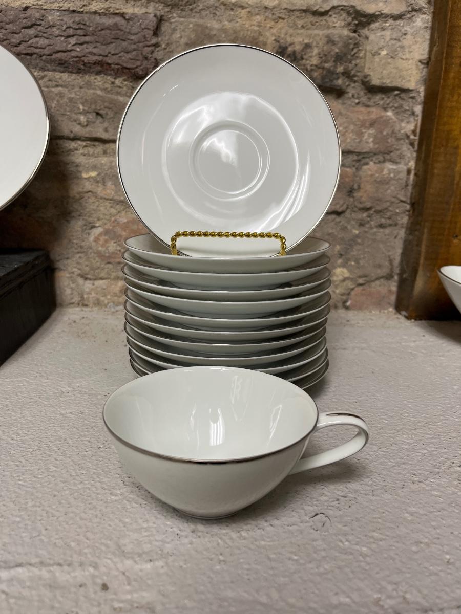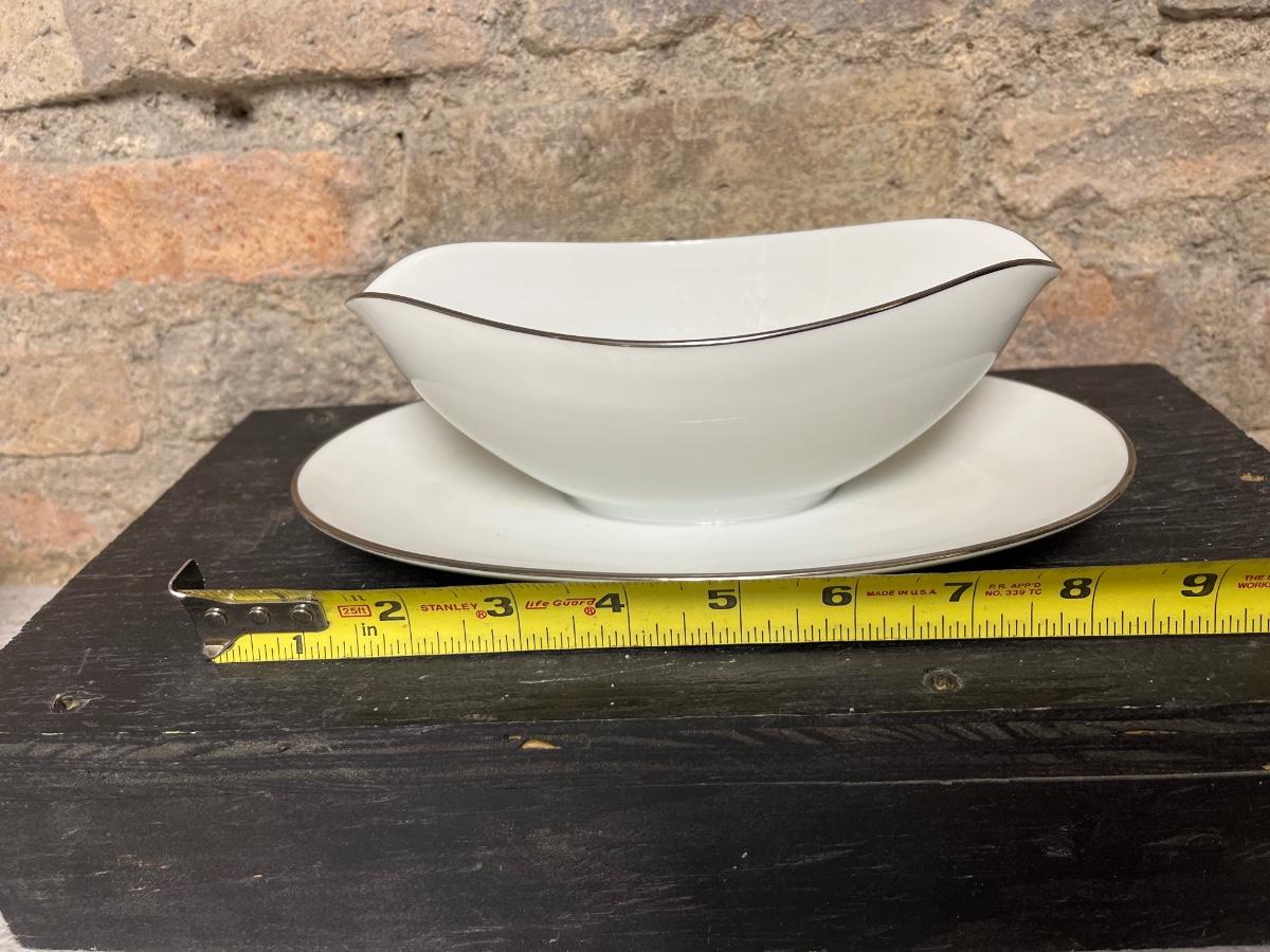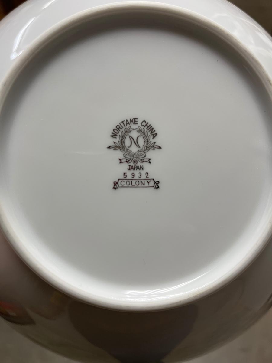 Beautiful set of Noritake Colony china. Twelve place settings of dinner plates, salad plates, dessert plates, berry bowls and cups and saucers, along with a large oval platter, oval vegetable bowl, serving bowl and gravy boat. one small rim chip on a saucer as noted in the photos.