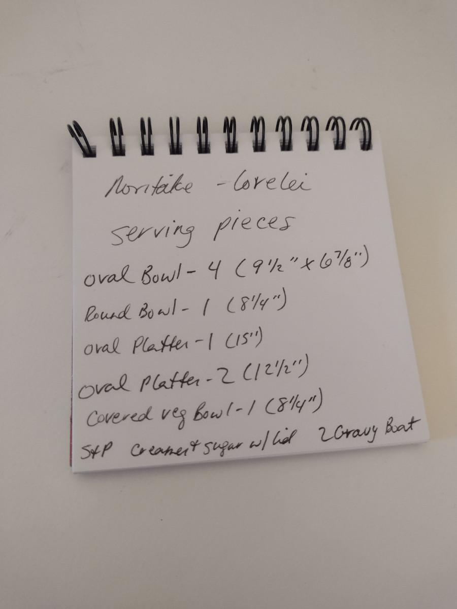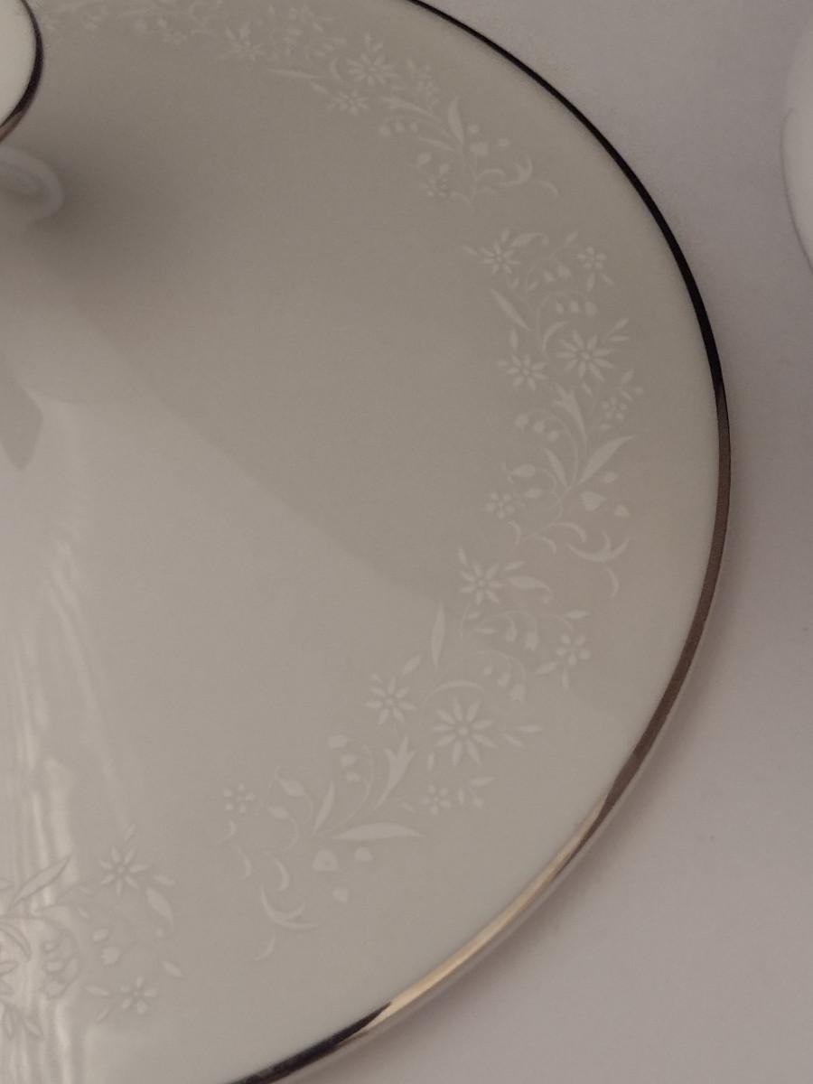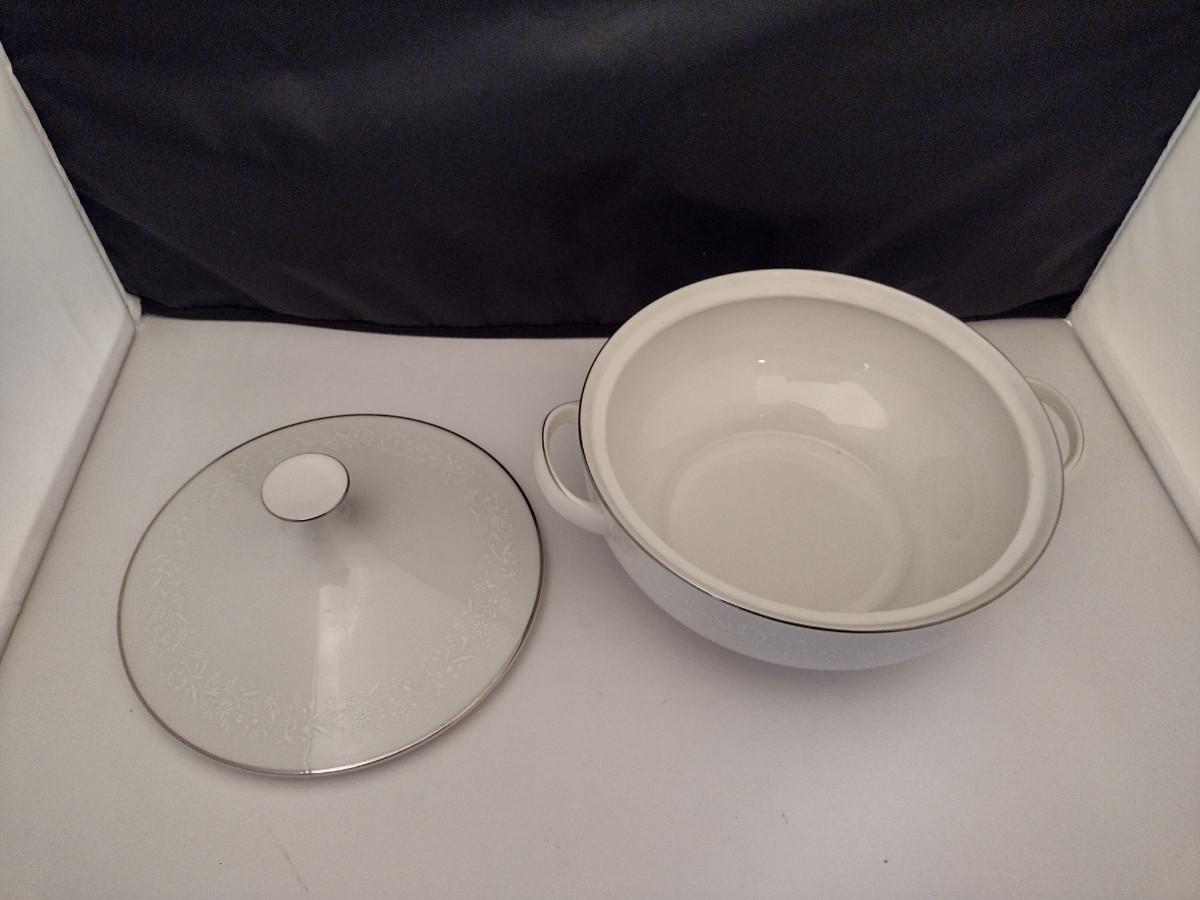 Noritake Serving Pieces- Lorelei Pattern- 15 Pieces. Set includes: Oval Bowls (9 1/2" x 6 7/8")- 4 pcs., Round bowl (8 1/4")- 1 pc., Oval platter (15")- 1 pc., Oval platter (12 1/2")- 2 pcs., Covered vegetable bowl (8 1/4")- 1 pc., Salt & Pepper shaker set, Creamer, Covered sugar bowl, Gravy boat with underplate- 2 pcs.