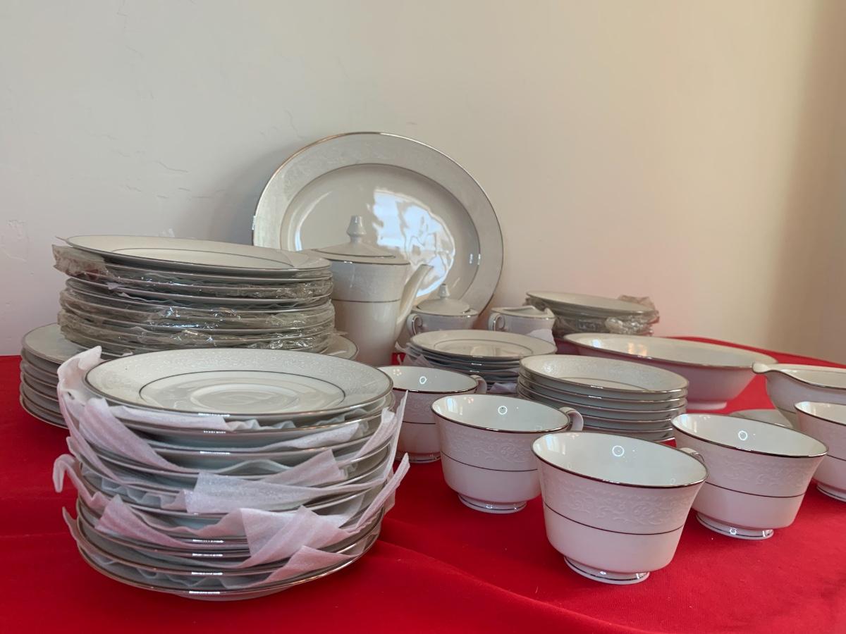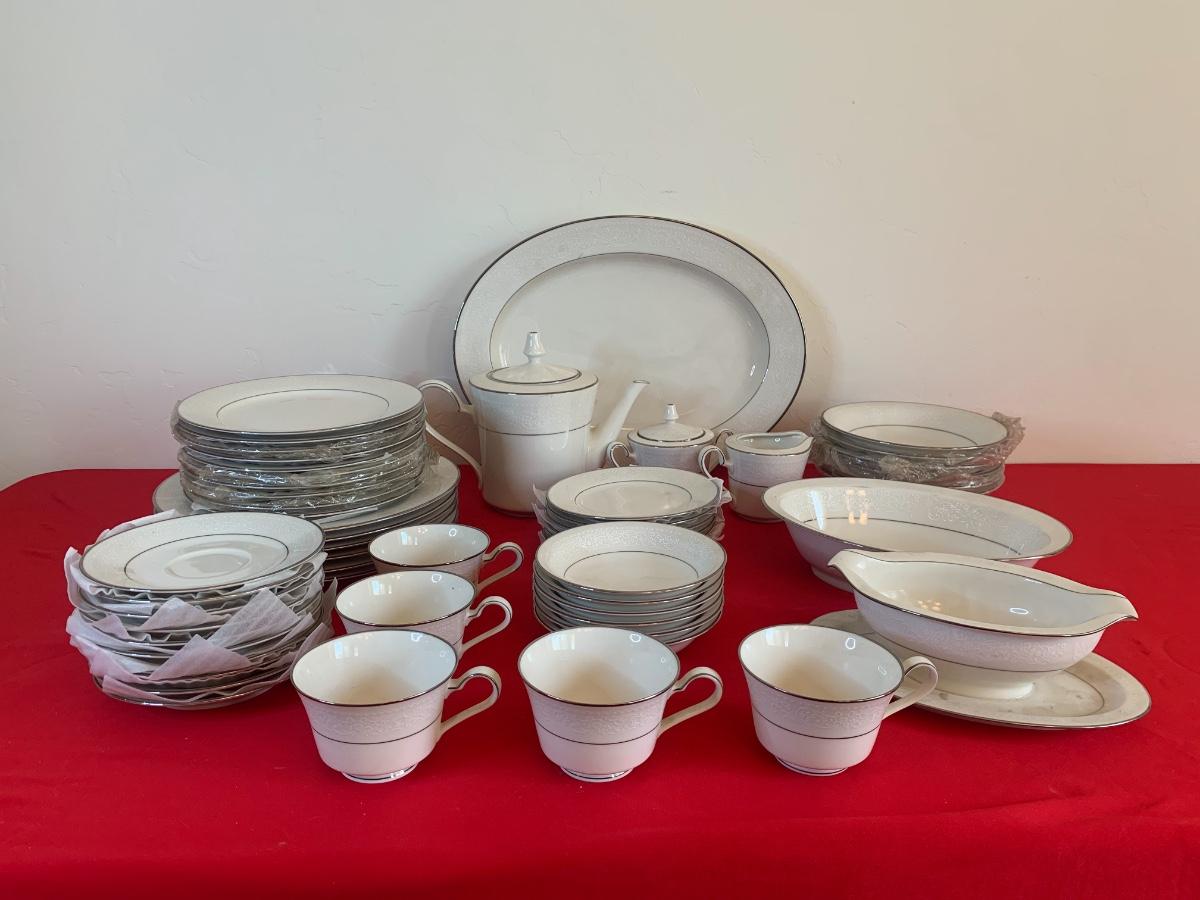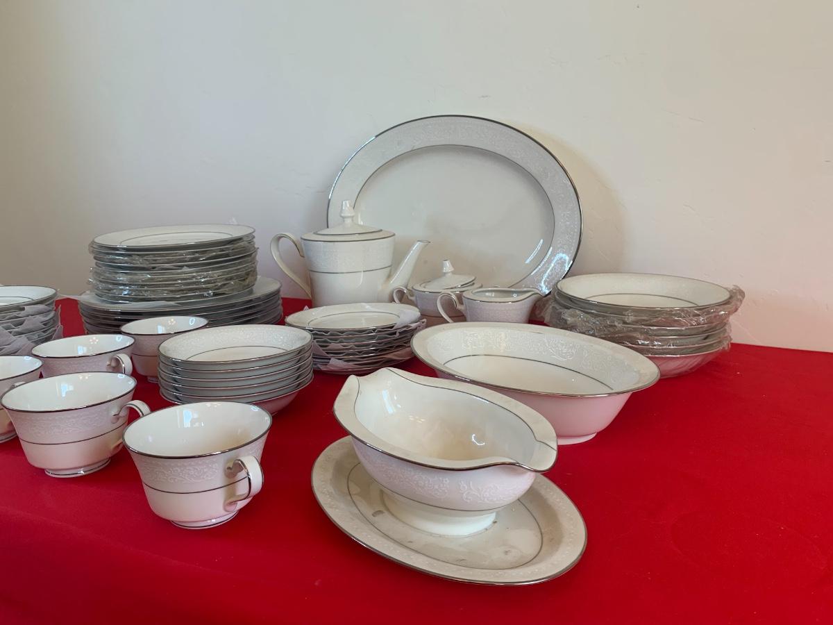 Lot includes a selection of Noritake Ivory China, Sorrento pattern. 61 pieces in very good condition. (6 cups were added after photos taken)