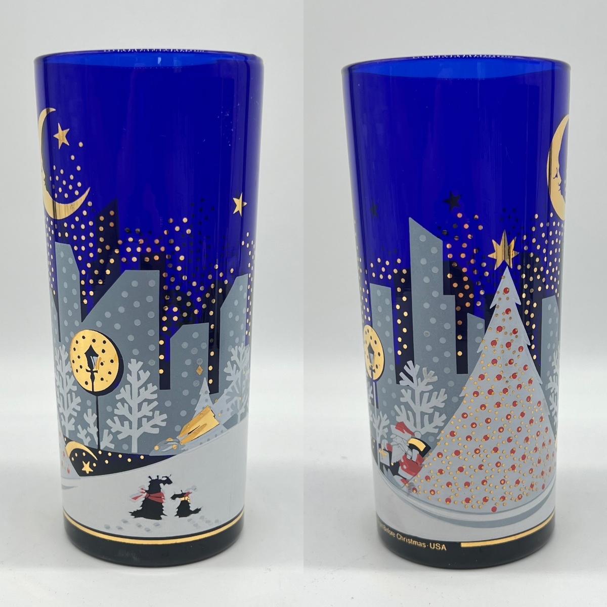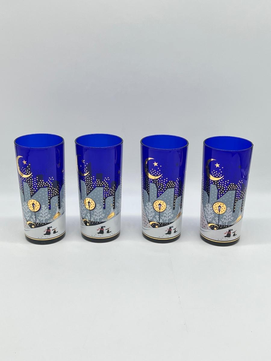 NORITAKE ~ “˜Twas The Night Before Christmas ~ Set Of Four (4) Cobalt Blue Hiball Glasses