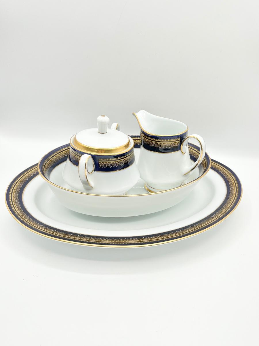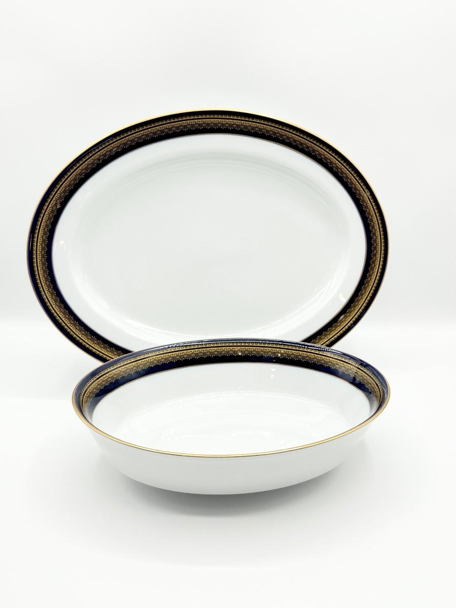 28 Pieces Includes = (8) Dinner plates ~ (8) Salad plates ~ (8) Dessert plates ~ (1) 13.5” Oval Platter ~ (1) 10” Serving Bowl ~ (1) Sugar ~ (1) Lidded Creamer