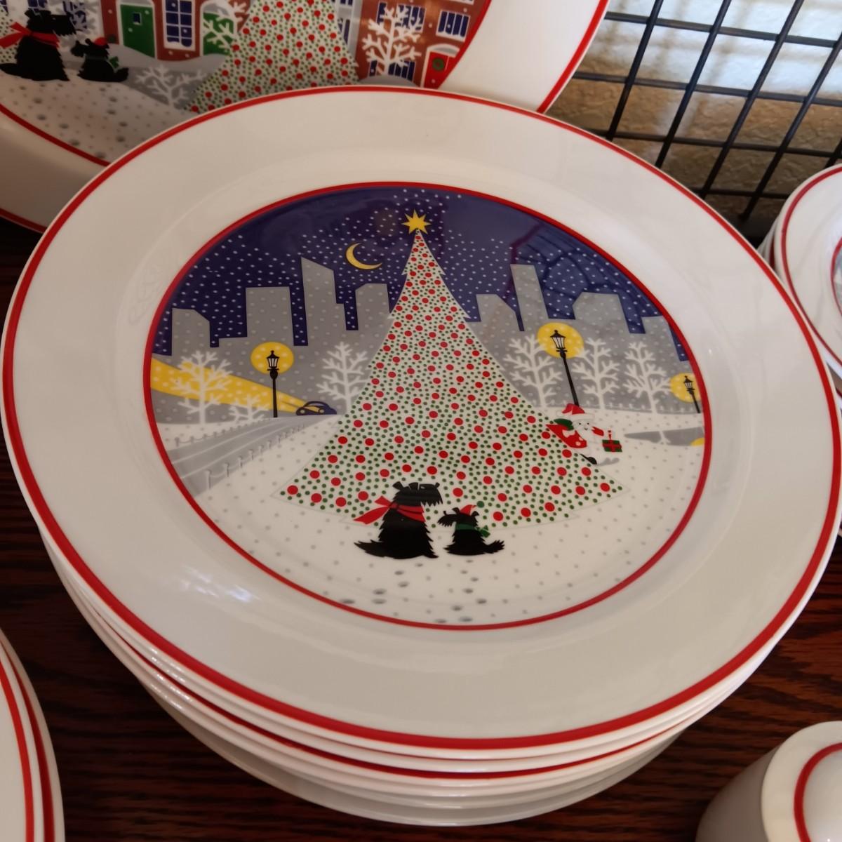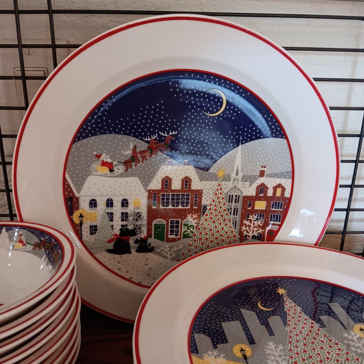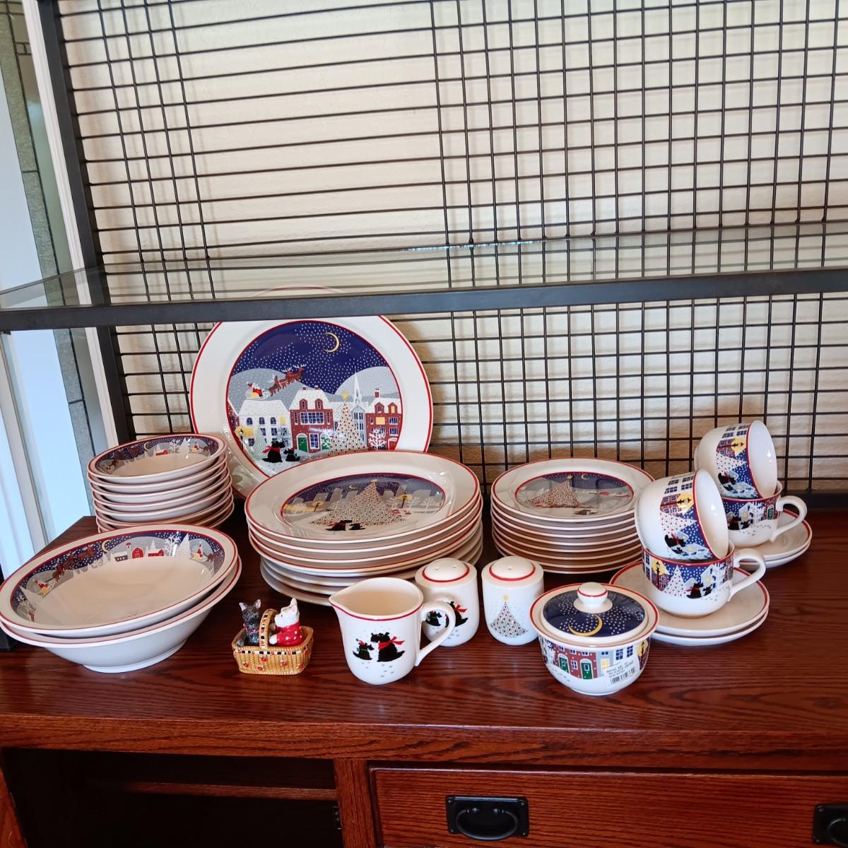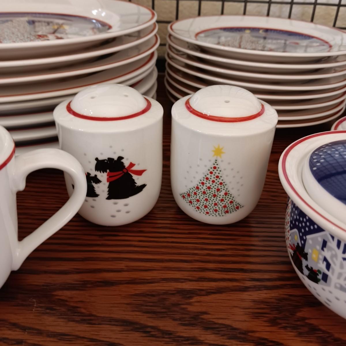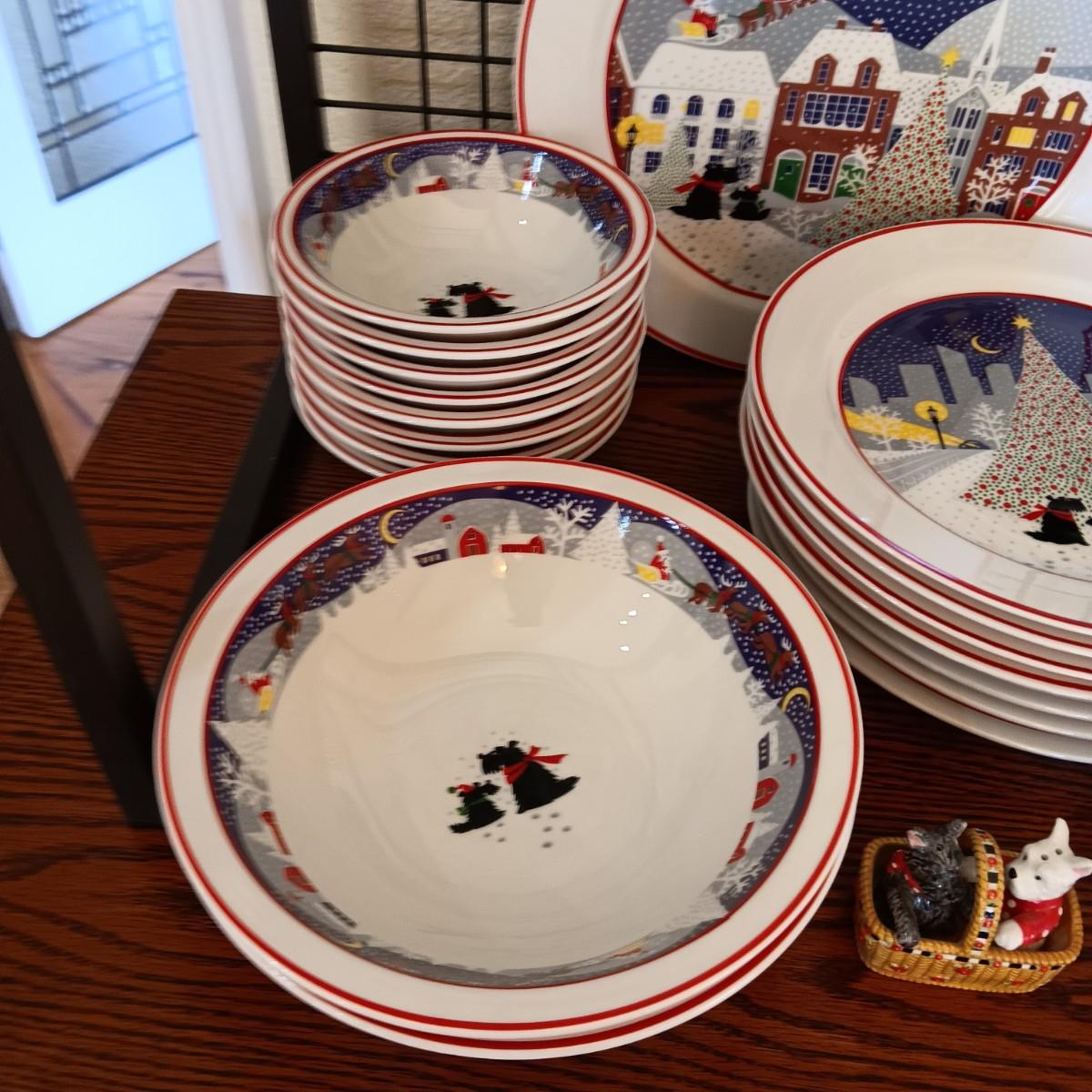 NORITAKI "TWAS THE NIGHT BEFORE CHRISTMAS" SCOTTY DOG DINNERWARE FOR 8 WITH EXTRAS
