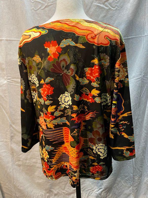 Norm Thompson Asian Inspired Floral Design Blouse Size XL YD#020-1220-02015
