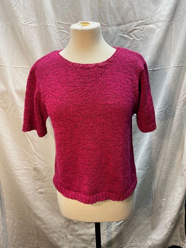 Norm Thompson Fuchsia Short Sleeve Sweater Blouse Size Large YD#020-1220-02039