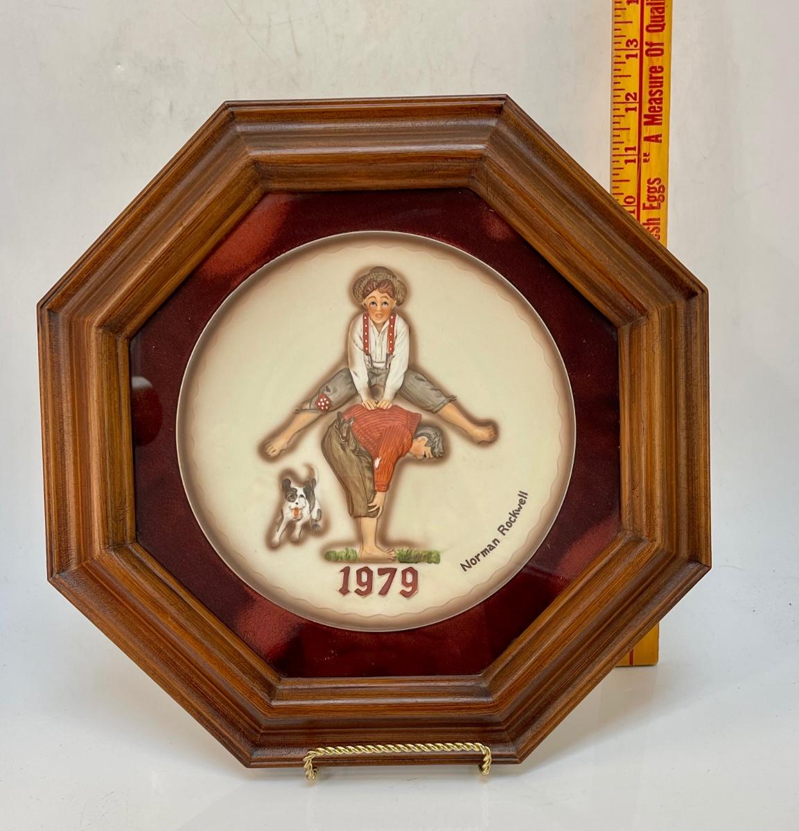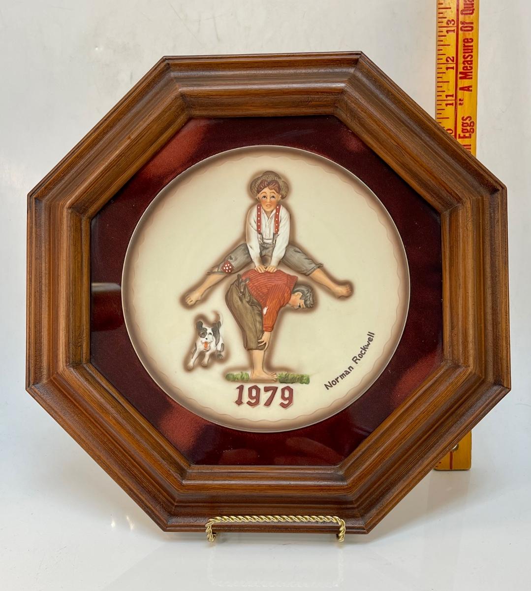 Norman Rockwell Collector Plate in Shadow Box Frame “Leap Frog” 1979 6” plate