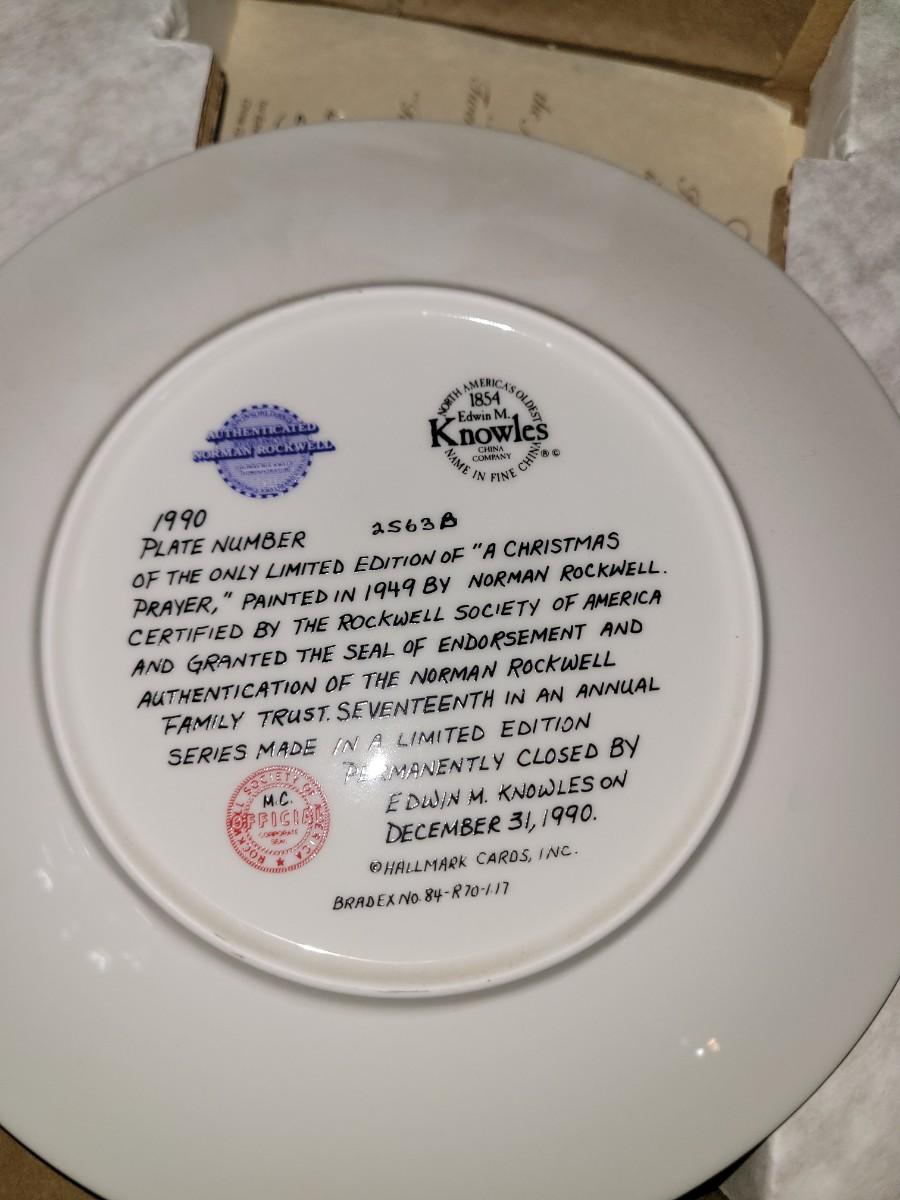 Norman Rockwell collector plate titled "A Christmas Prayer" from 1990, manufactured by Edwin M. Knowles China Company