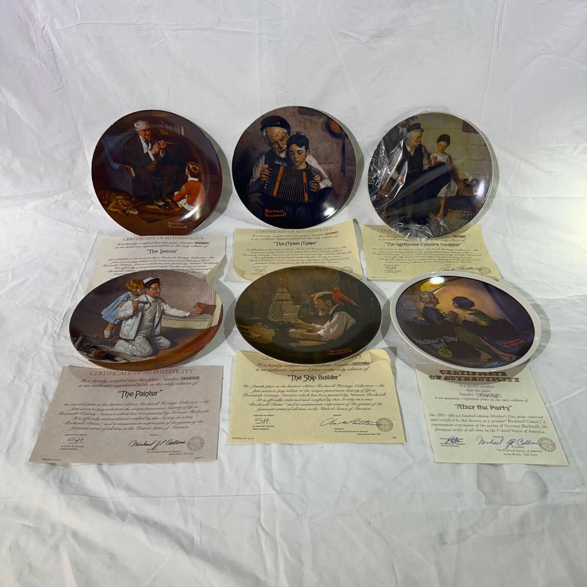 Norman Rockwell Collectors Plates, 6 plates in this set all come with original cardboard packaging and authenticity paperwork. All in excellent condition.