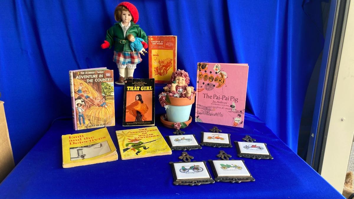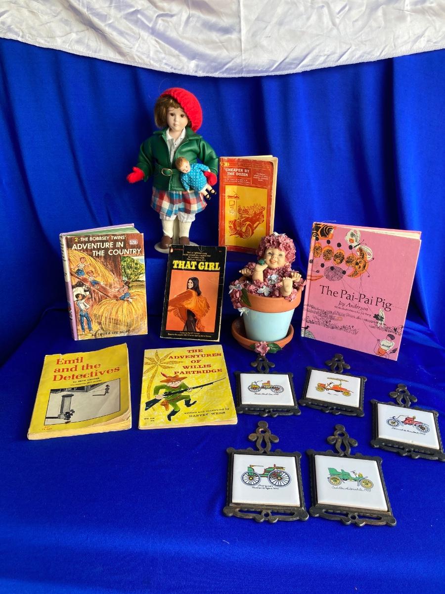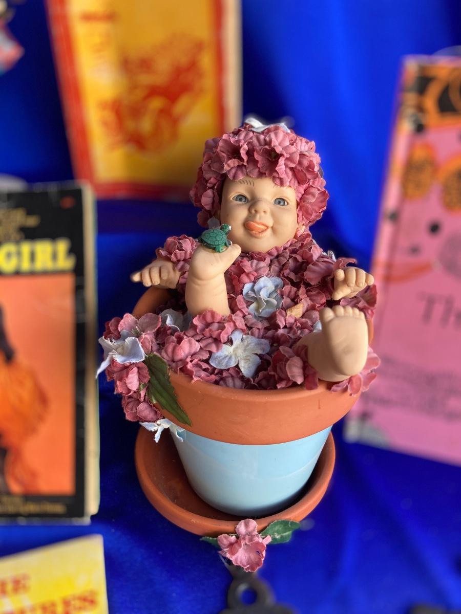 NORMAN ROCKWELL PORCELAIN DOLL, CUTE LITTLE FLOWER POT BABY, VINTAGE BOOKS AND MORE! 💥
