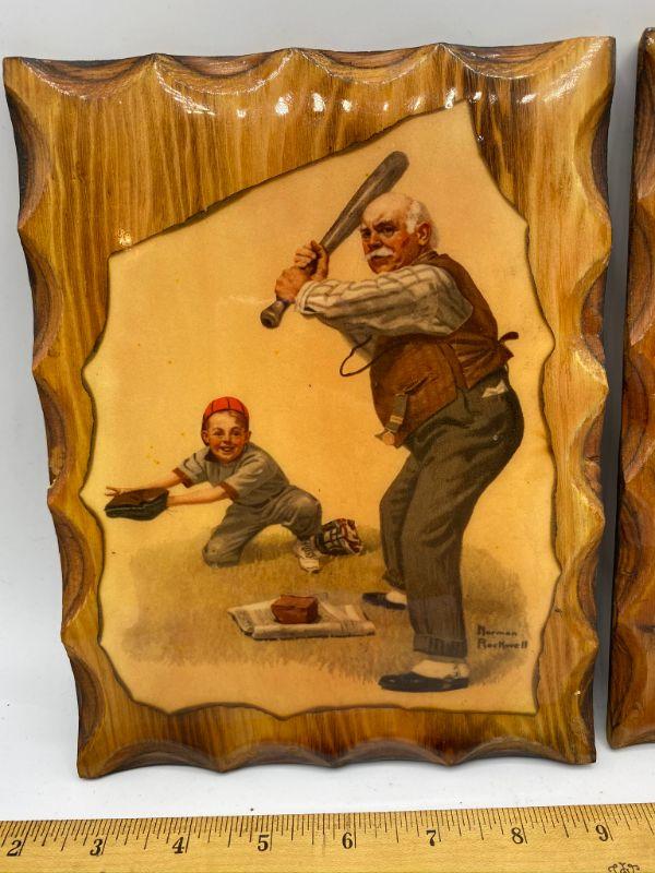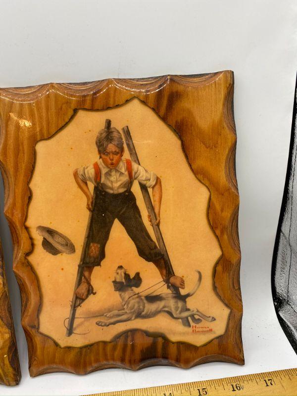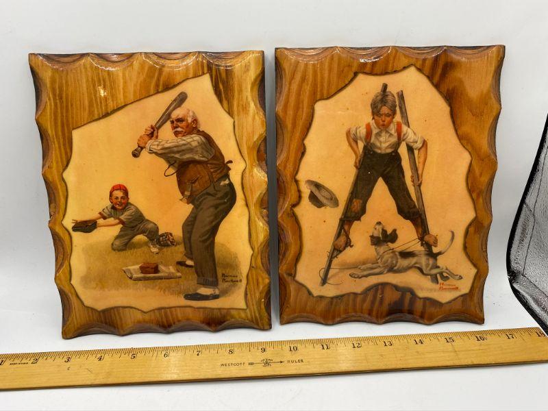 Pair of Norman Rockwell Prints on wood. Need hangers added to hang on wall.