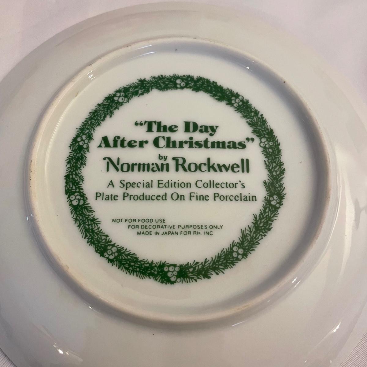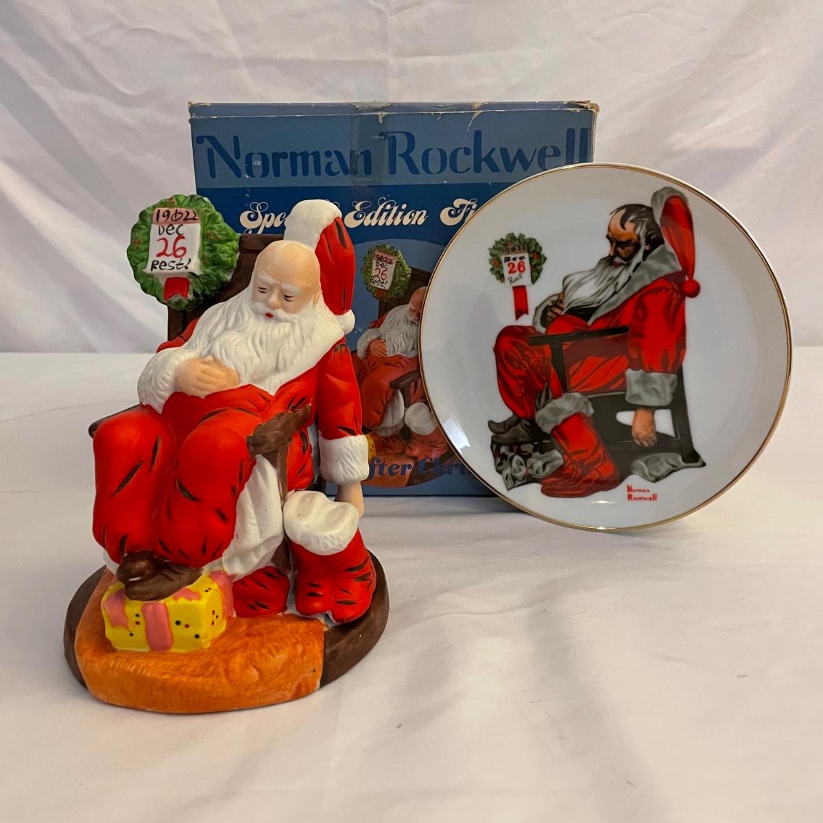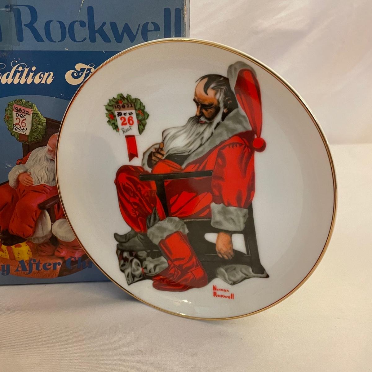 This special edition ceramic figurine is a Norman Rockwell, “˜The Day after Christmas’ and comes with original box. Titled the same, the China, gold rimmed collector plate measures 6.5” d.