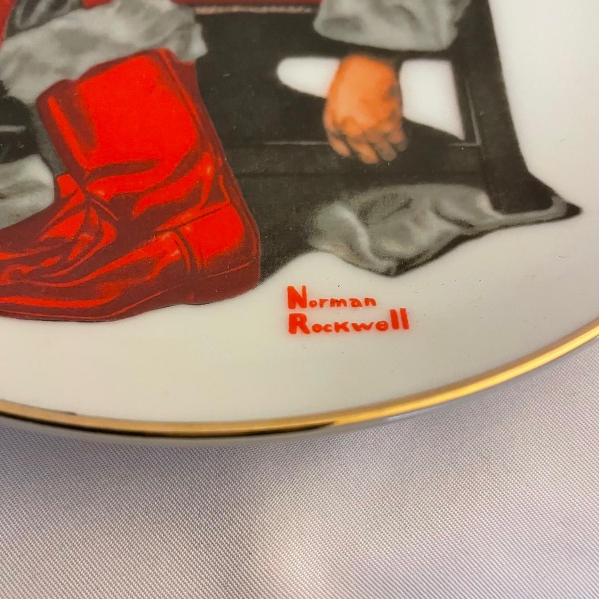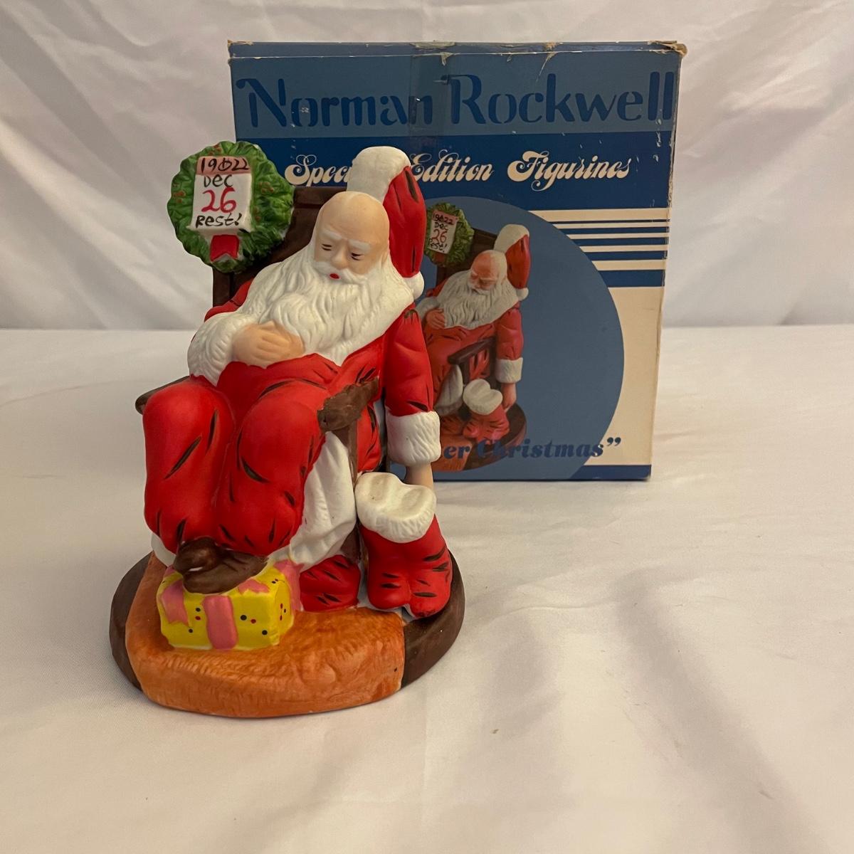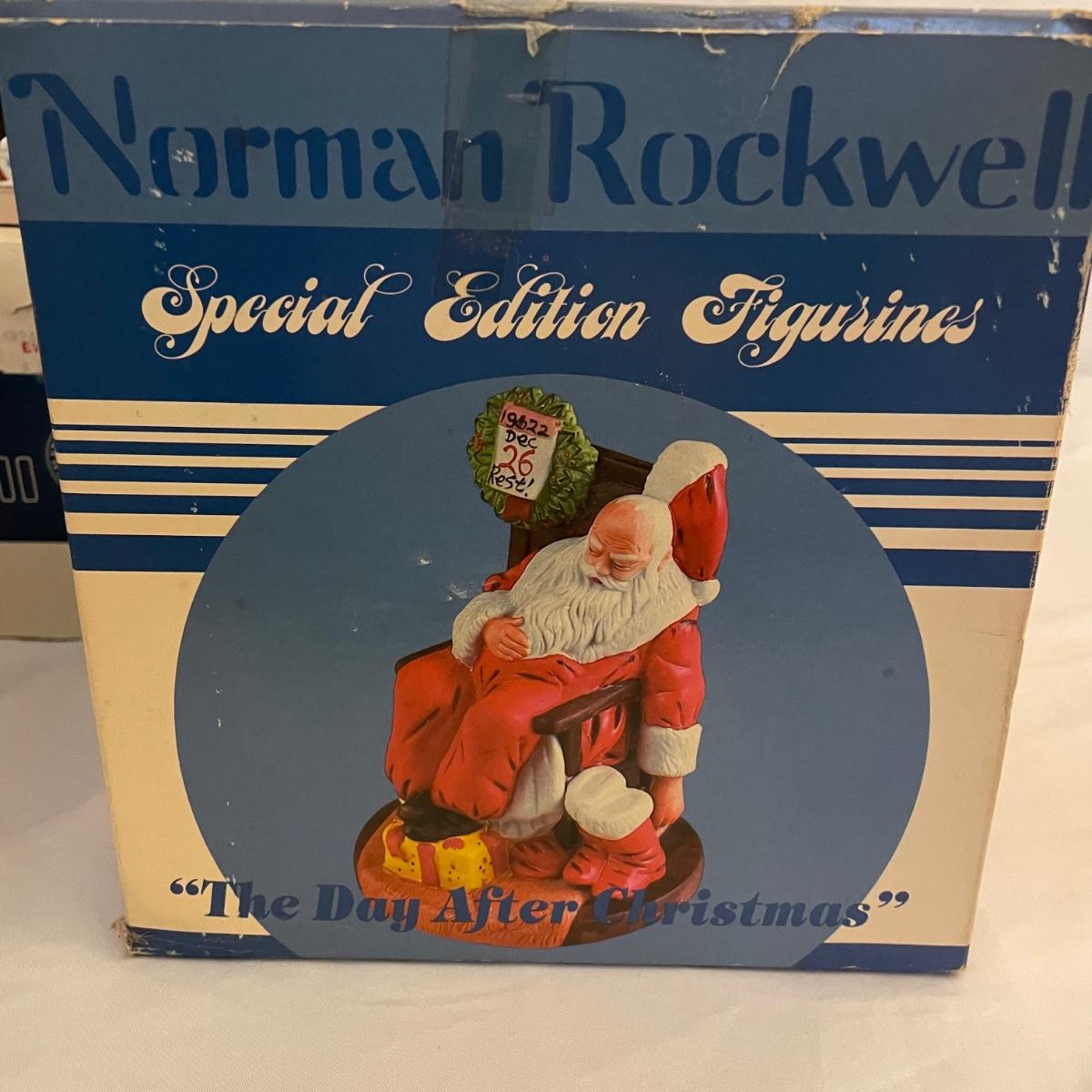 This special edition ceramic figurine is a Norman Rockwell, “˜The Day after Christmas’ and comes with original box. Titled the same, the China, gold rimmed collector plate measures 6.5” d.