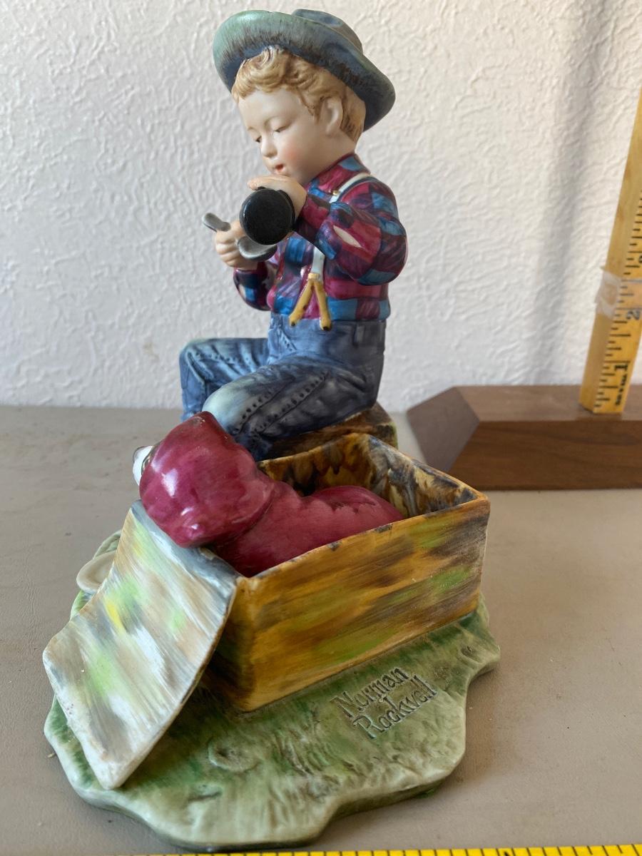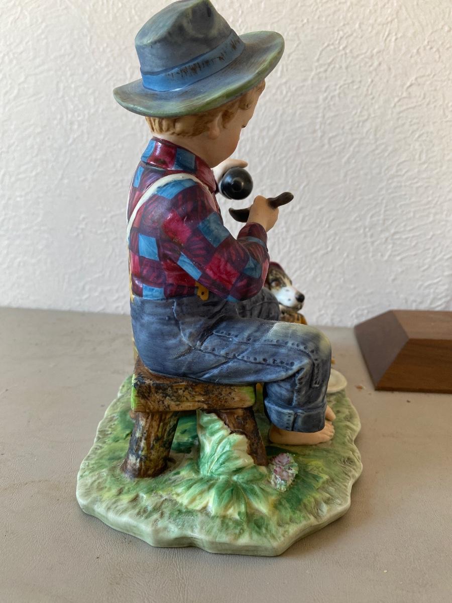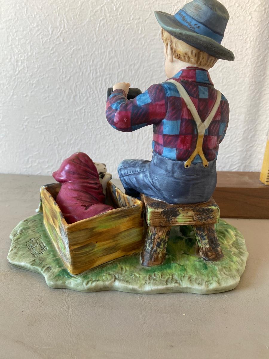 Adorable Norman Rockwell, figurine of the little boy and puppy called the mysterious Melady. It comes in its original box.