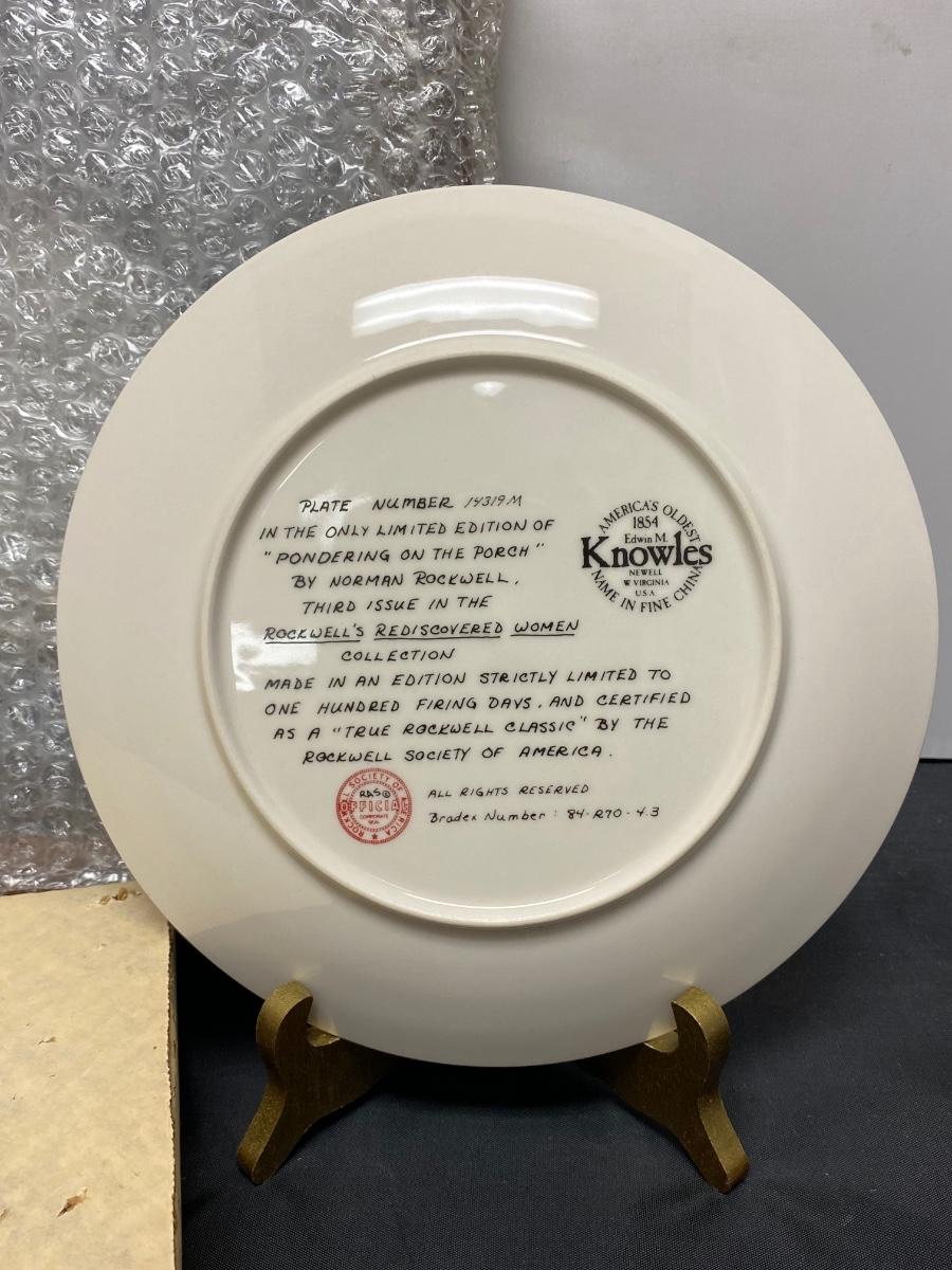 Norman Rockwell's Rediscovered Women Collection collector plate "Pondering on the Porch". Comes in original shipper box with display frame.