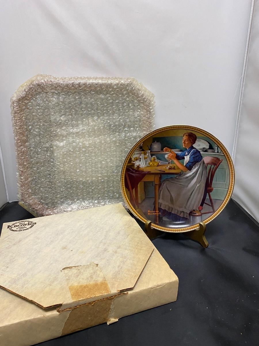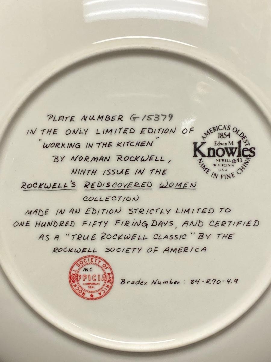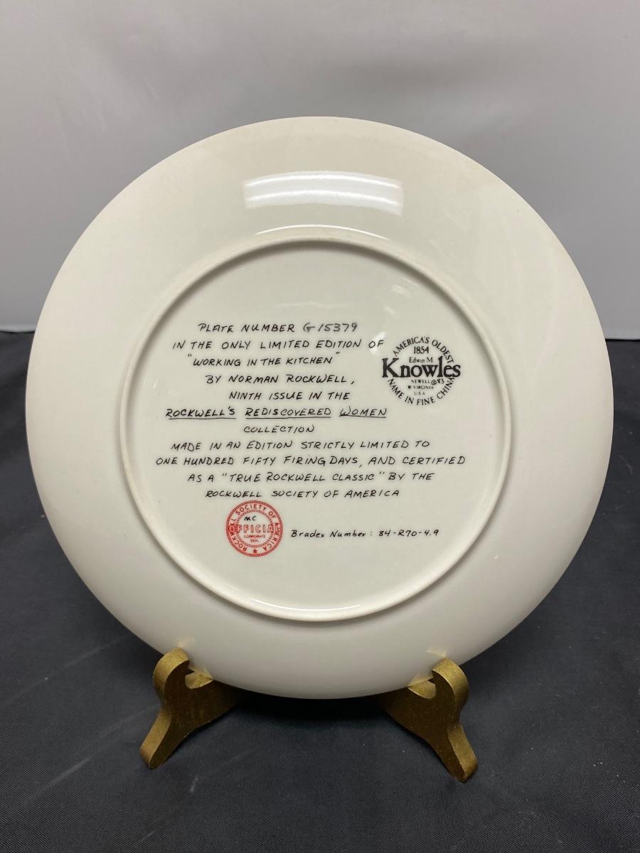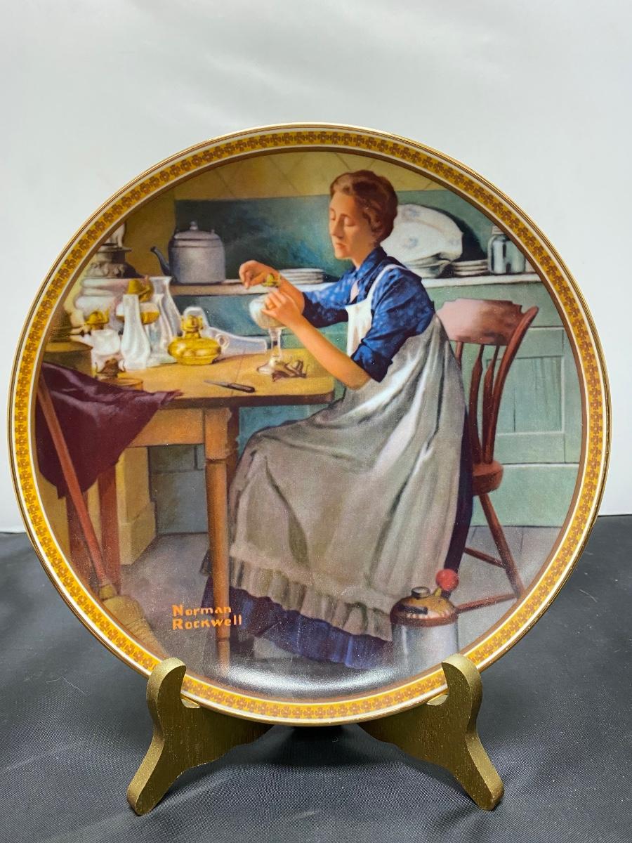 Norman Rockwell's Rediscovered Women Collection "Working in the Kitchen Plate" collector plate. In original shipper box and comes with an unused display frame.
