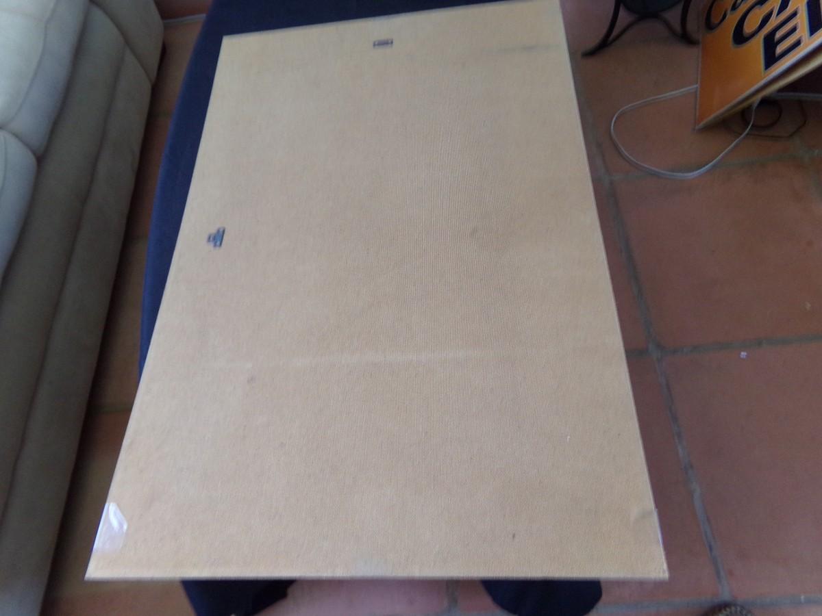 BEWTWEEN PLASTIC AND HARDBOARD.
