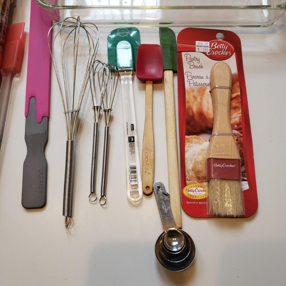 So many baking dishes to start the Fall off right! Find glass and metal baking pans, measuring cups and utensils. See pictures for details.