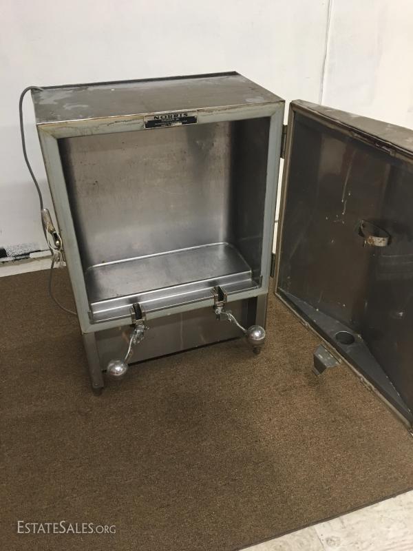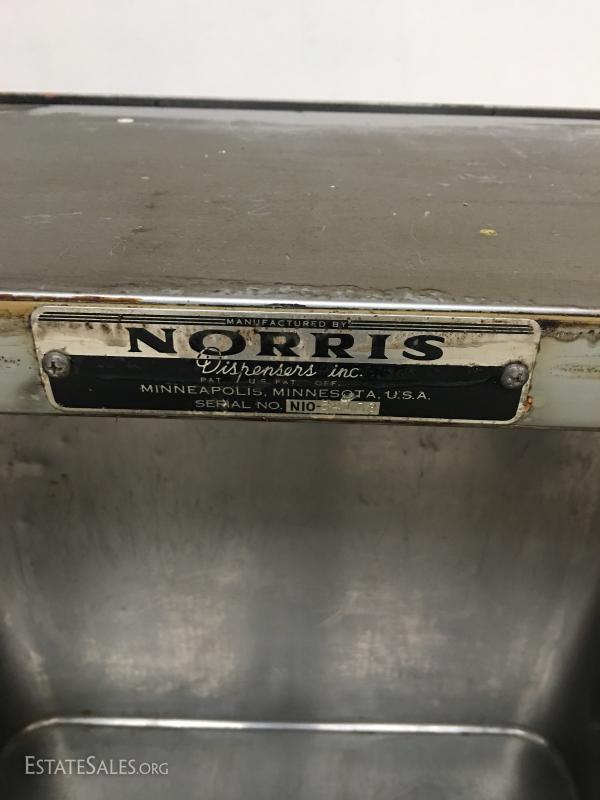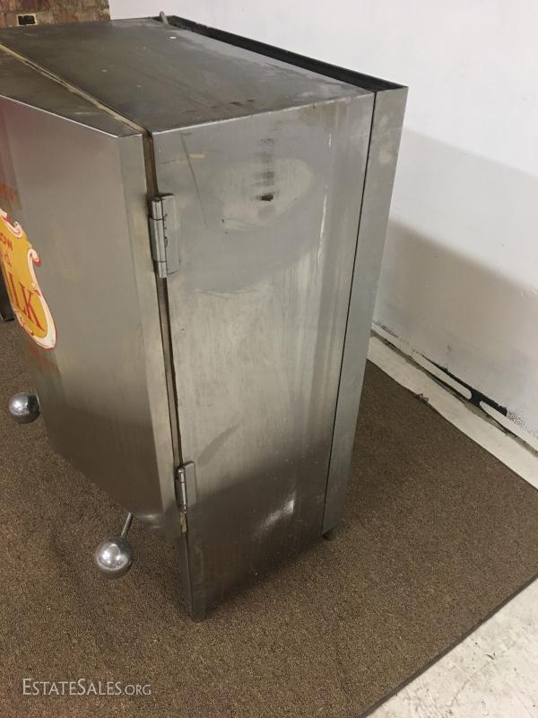 Norris Milk dispenser refrigerator, in good working condition, 26" wide, 20" deep and 43" tall. 110 volt, hold 2 separate milk containers. Model N10