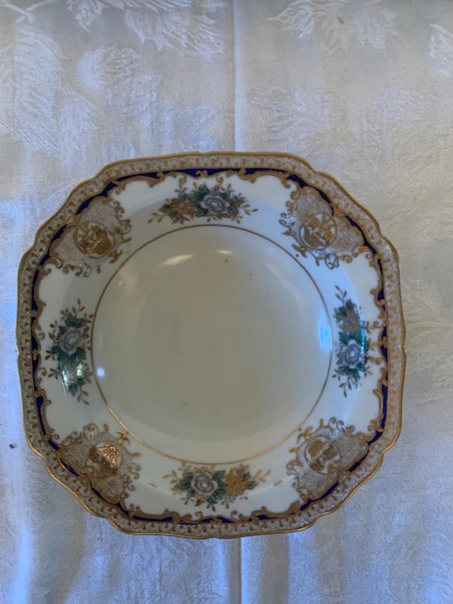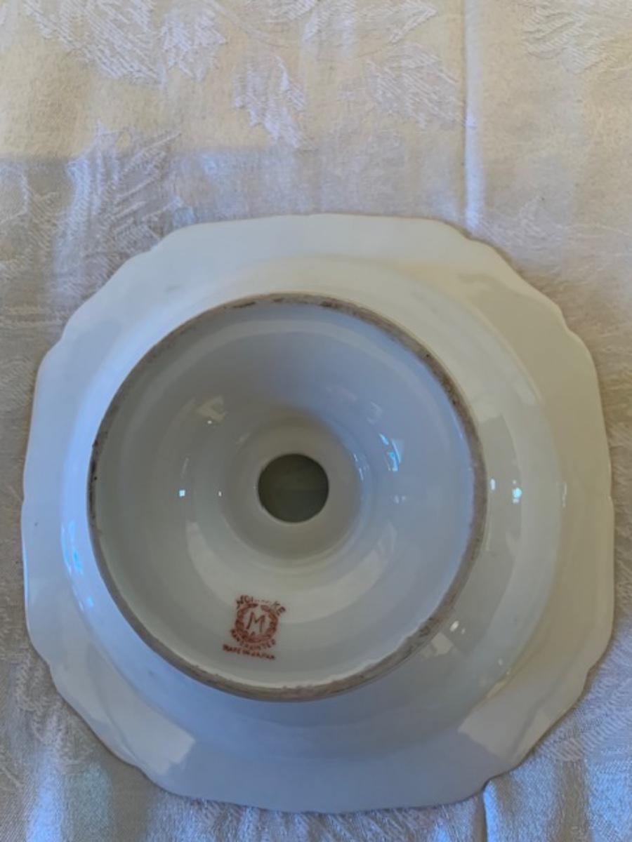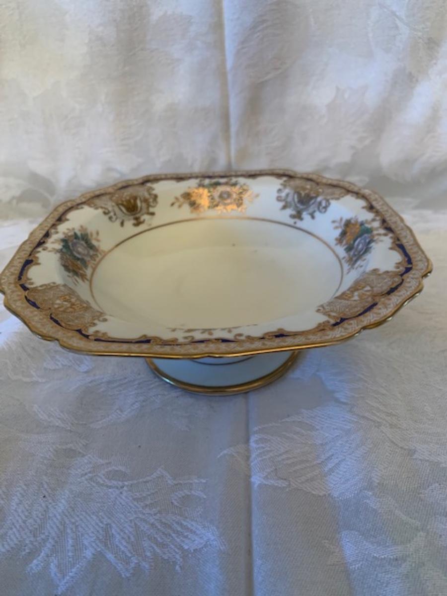 Vtg Noritaki “M” pedestal China bowl with raised gold trim