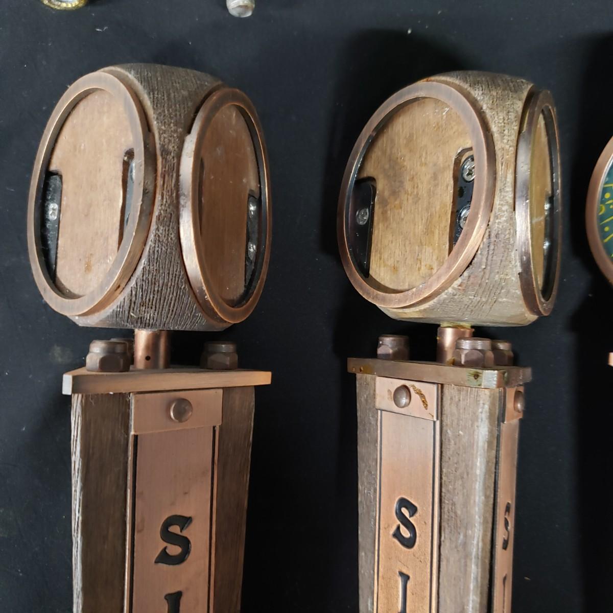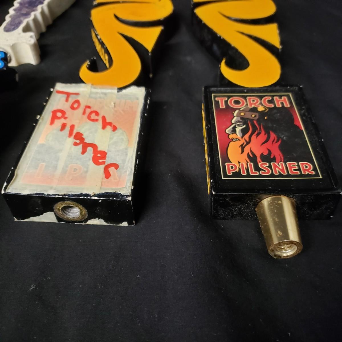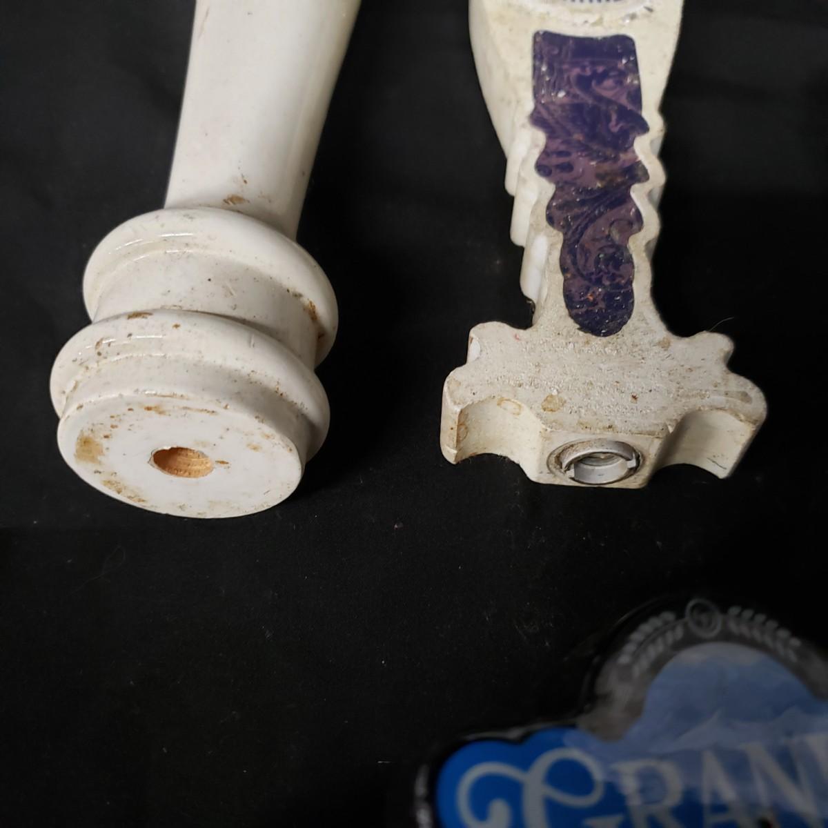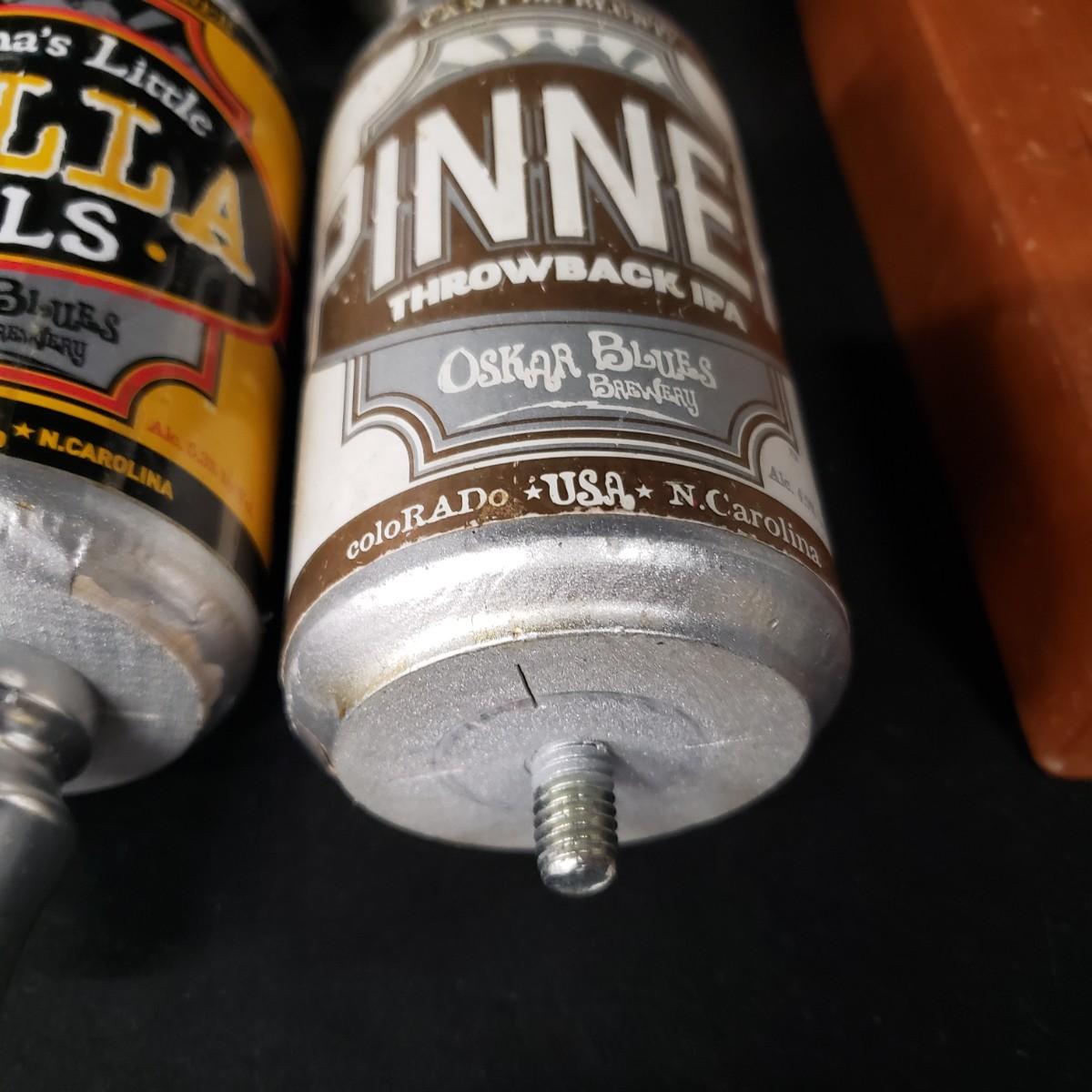 26 various beer taps from North Carolina Breweries. 6 Oskar Blues (6.5"x 3"), 3 Sierra Nevada (3"x11.5"), 2 Lazy Hiker (2"x11"), 2 Granite Falls (2.5"x8.5"), 2 Foothills (1"x12"), 1 High Country (2"x10"), 9 Pisgah (.5"x11") and 1 Mystery (1"x7.5", has a broken top piece). All taps are primarily made of wood. Shipping available.