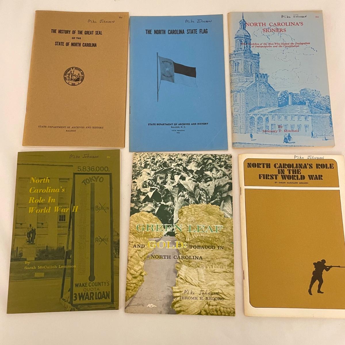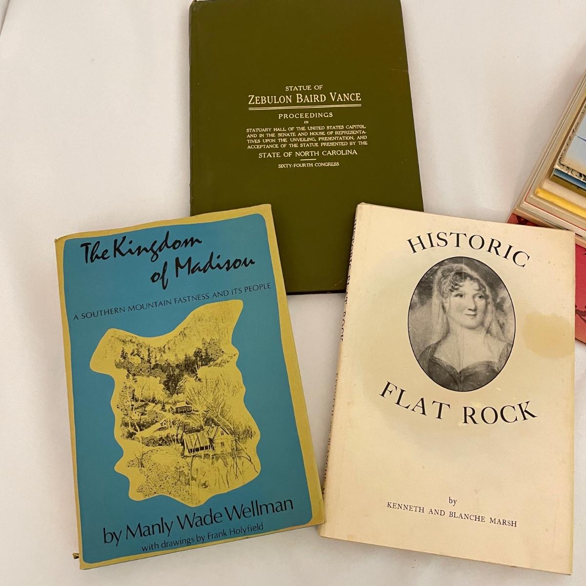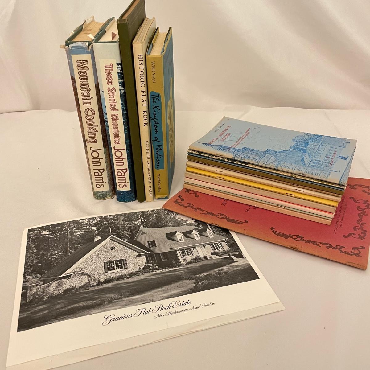 An 8.5” x 11” black and white pamphlet of a historic estate in Flat Rock. Lot includes two John Parris, Flat Rock and Madison County books plus one book with a separated binding titled The Statue of Zebulon Baird Vance. Lot also features eleven booklets about the history of North Carolina. Bioks are in good condition, but do show some age with scuffed edges. See images. Shipping available.