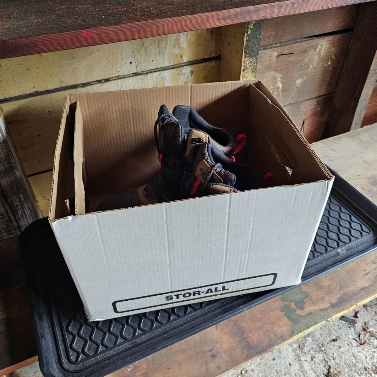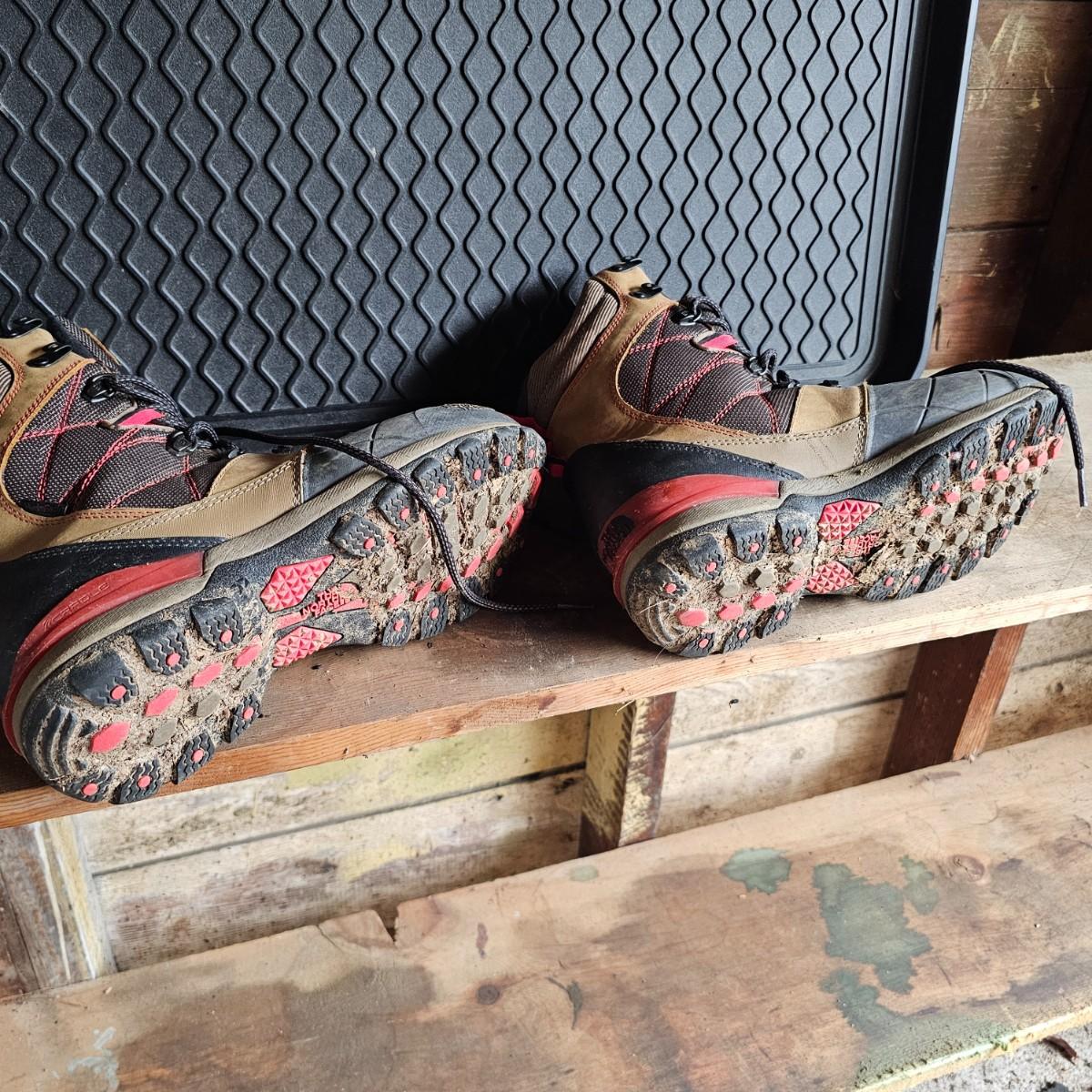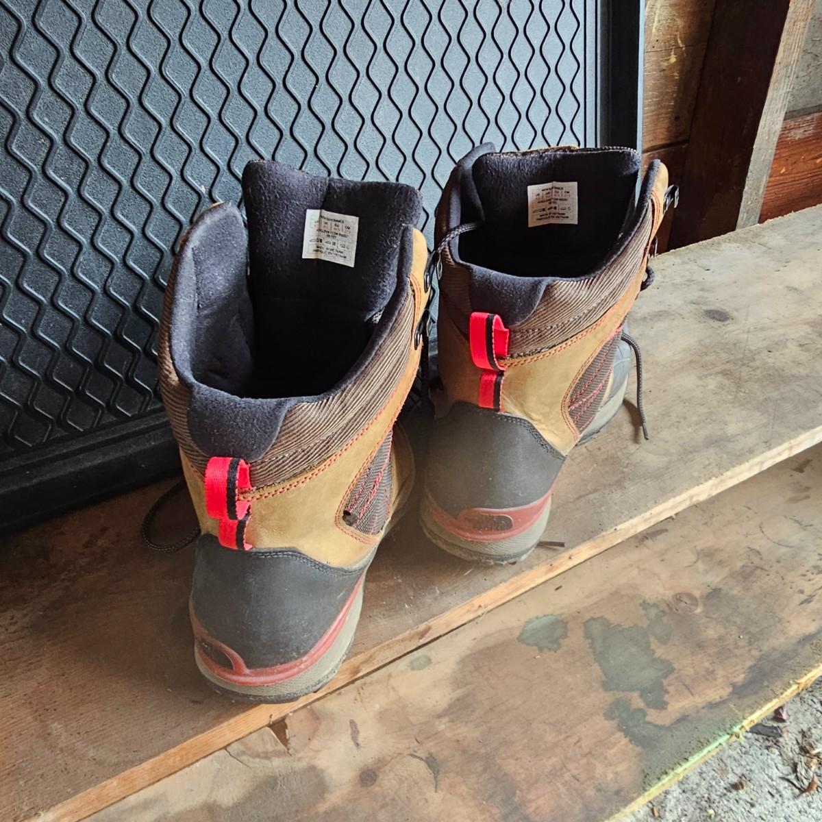 One pair U.S. size 9.5 men's boots by The North Face. Cotton boot laces and pull up strap in back. Soles need some cleaning. Also one 15" x 30" x 1"H plastic boot tray to catch the runoff when you come inside. See photos for details. Shipping available.