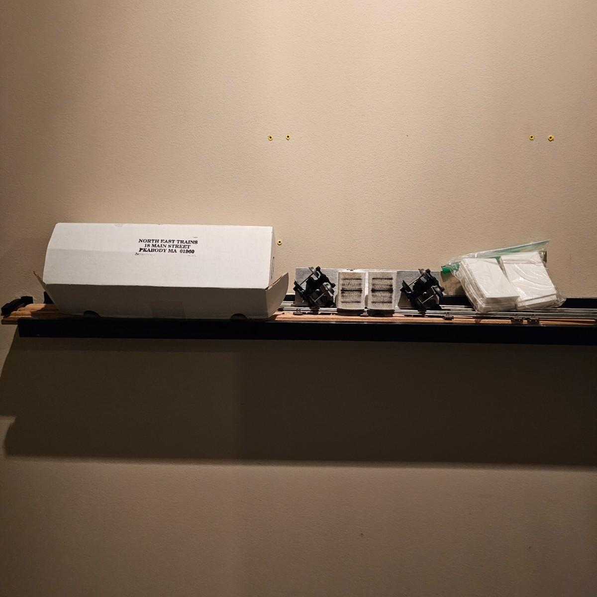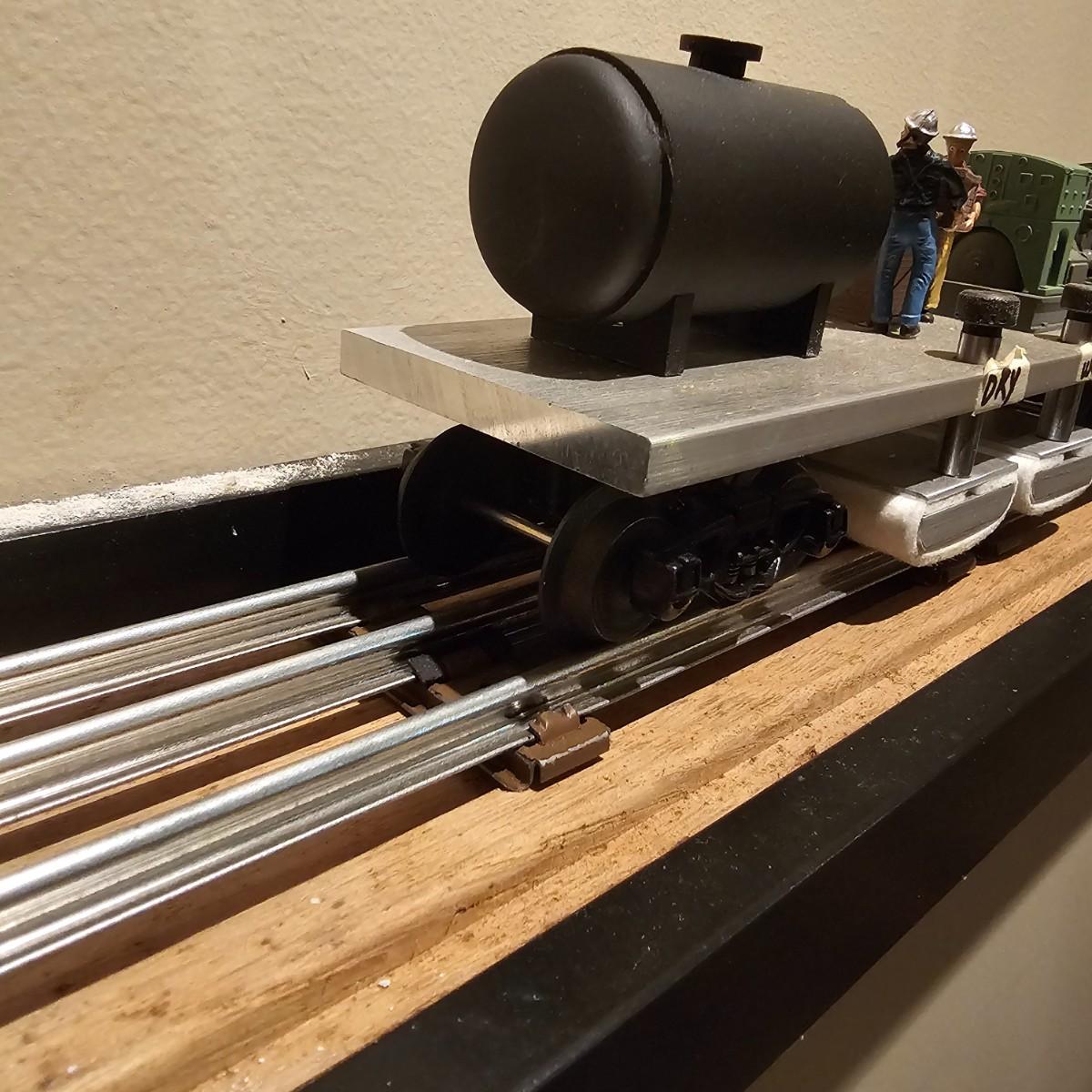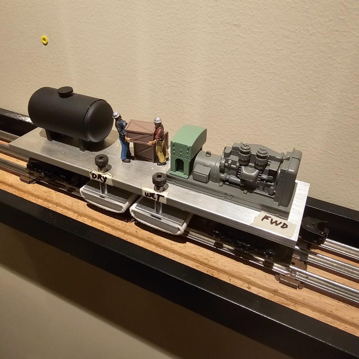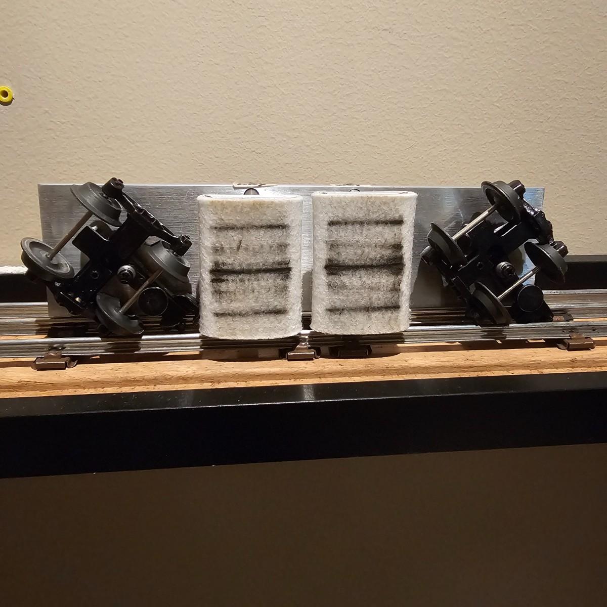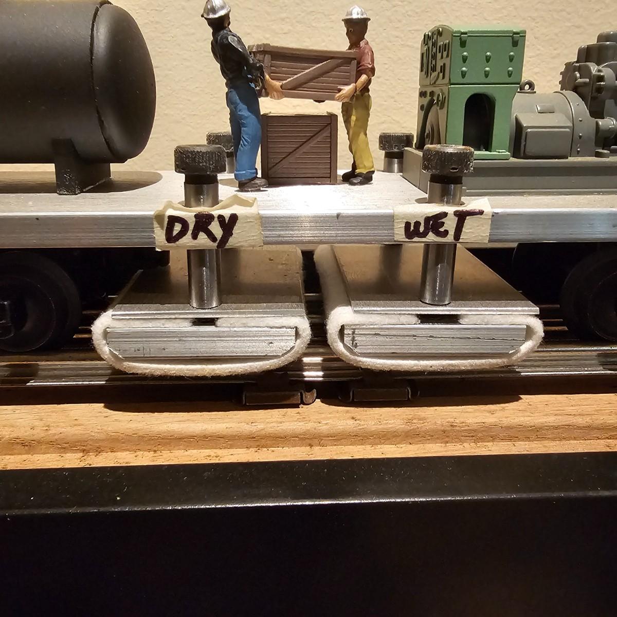 Custom made O gauge track cleaning car from North East Trains. Car has wet and dry pads to help clean gunk off the rails. Comes with extra pads and instructions. Car is aluminum and steel, measures 9" x 2.5" x 3"H. Has been used some. Tracks in photos are not included with this lot, but available elsewhere in this auction. See photos for details. Shipping available.
