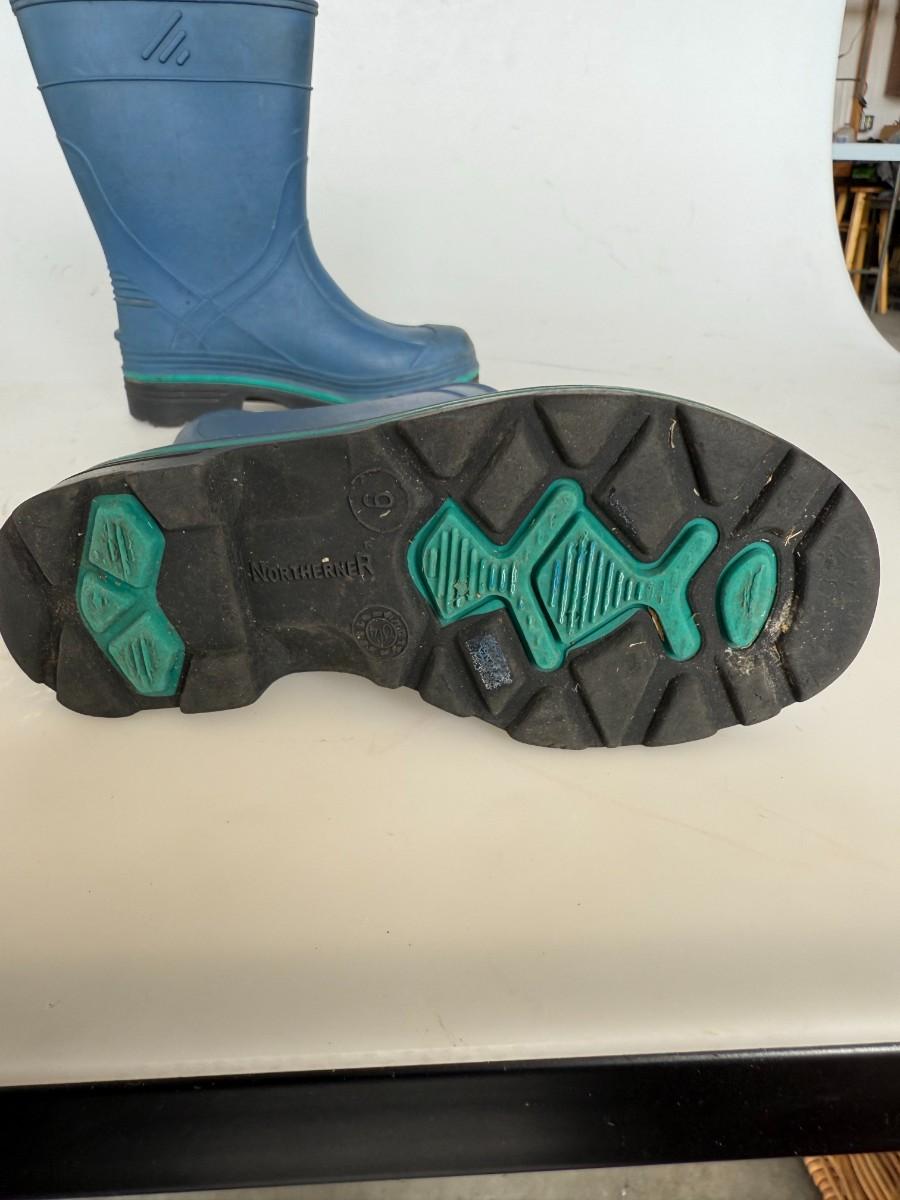 Durable blue Northerner brand rubber boots. Great for rain or garden play.