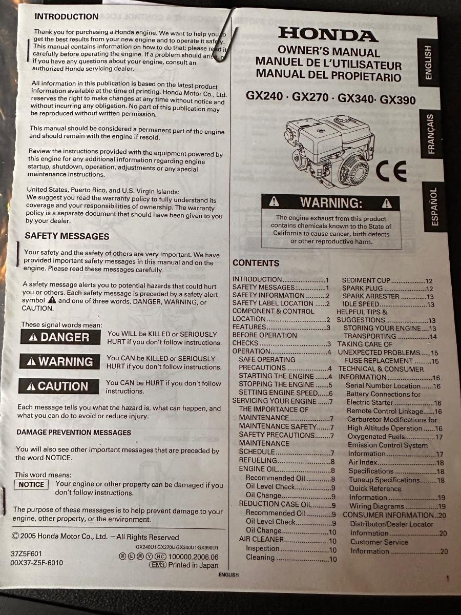 NorthStar Honda GX390 GX Series 8000 Triple Fuel Generator TFG Engine. In good condition, as shown. From a Redmond estate where the owner maintained their vehicles and equipment very well, though we have not run it. Sold as-is, where-is. We can schedule an on-site inspection upon request.