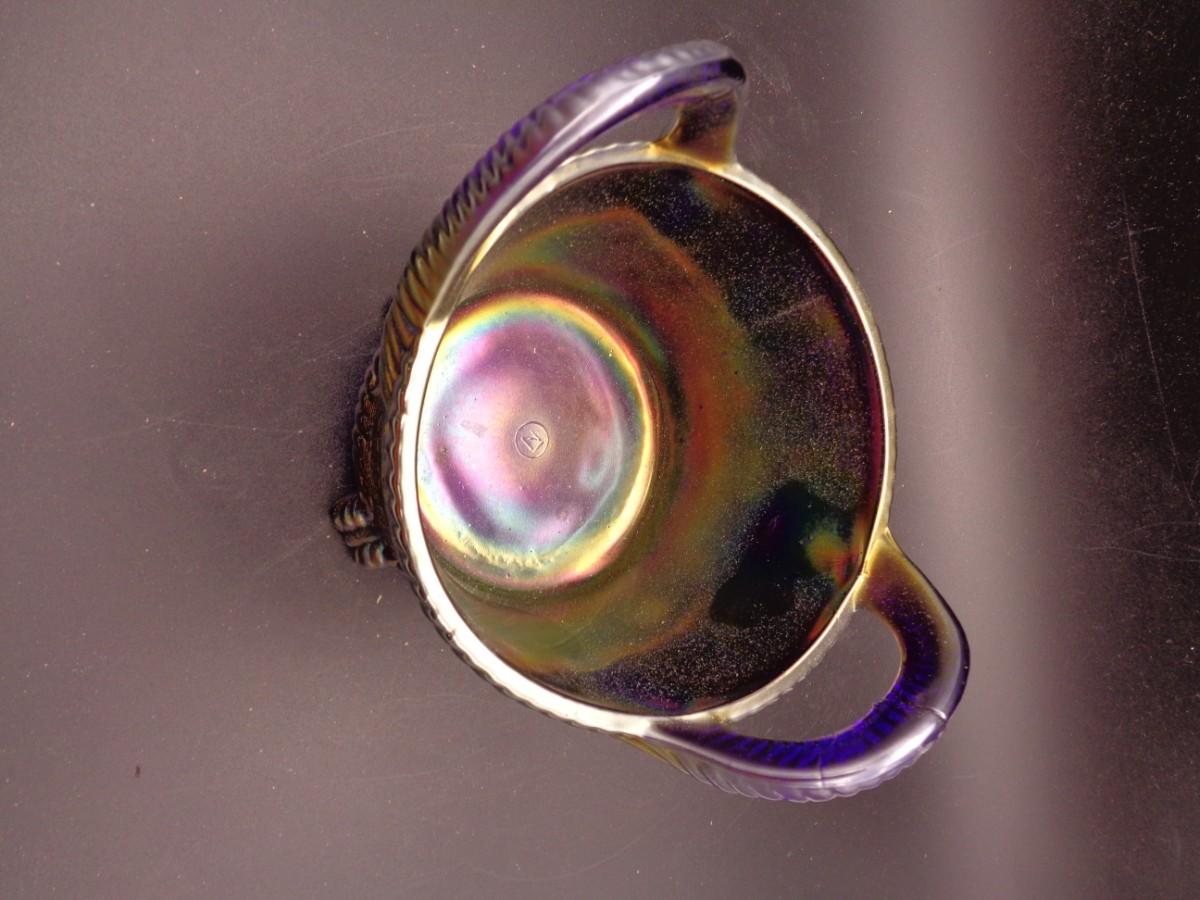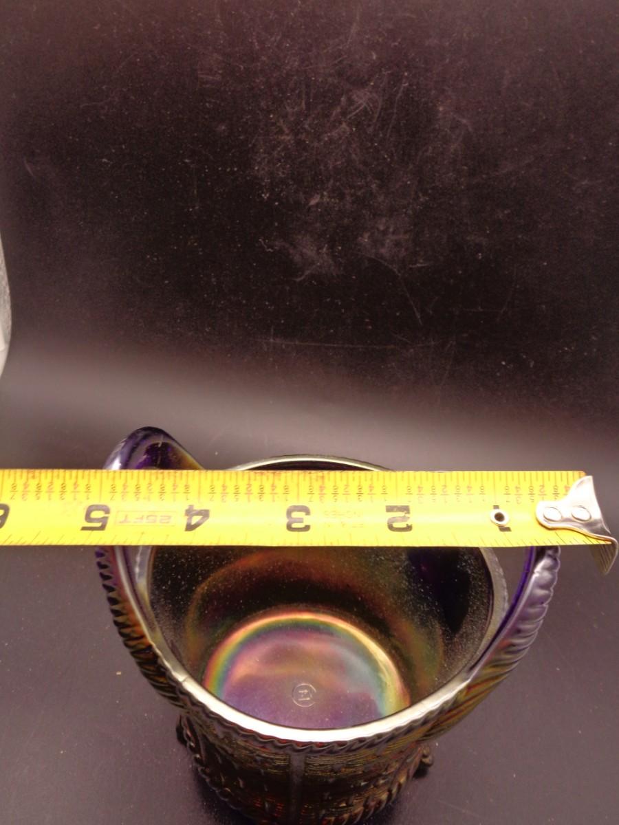 Northwood Blue Carnival Basketweave Bushel Basket Footed #78