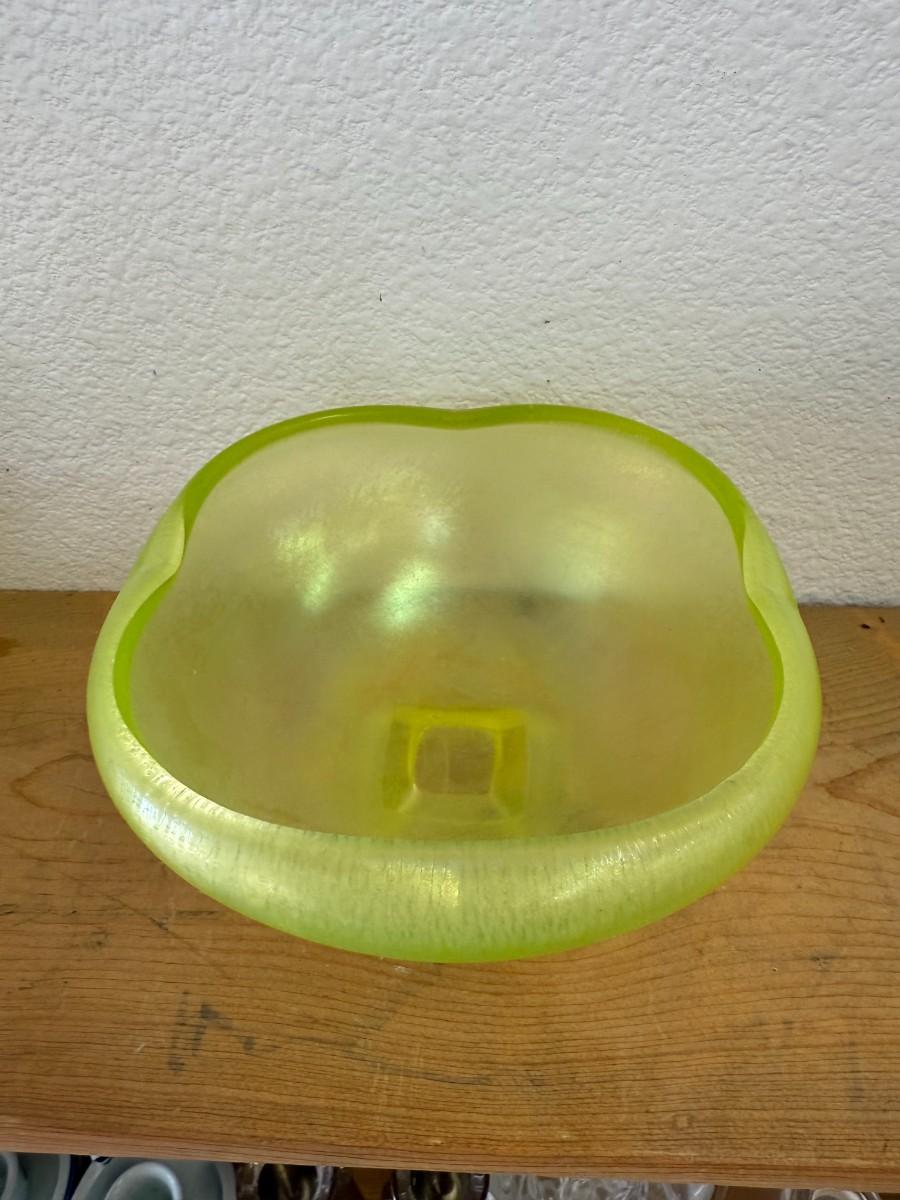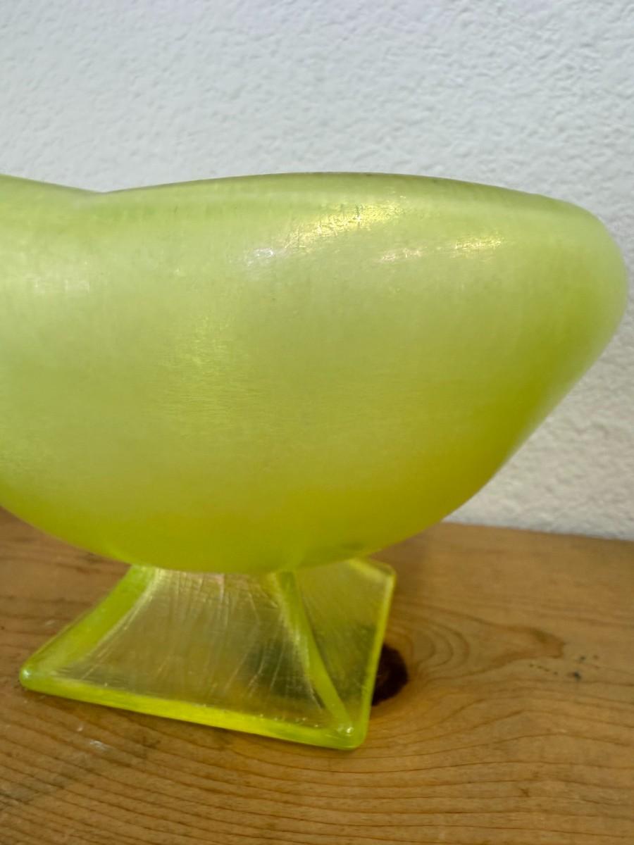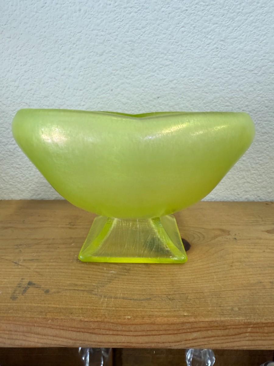 Northwood Stretch Glass Topaz 807 Cupped Crimped Compote Uranium Glass