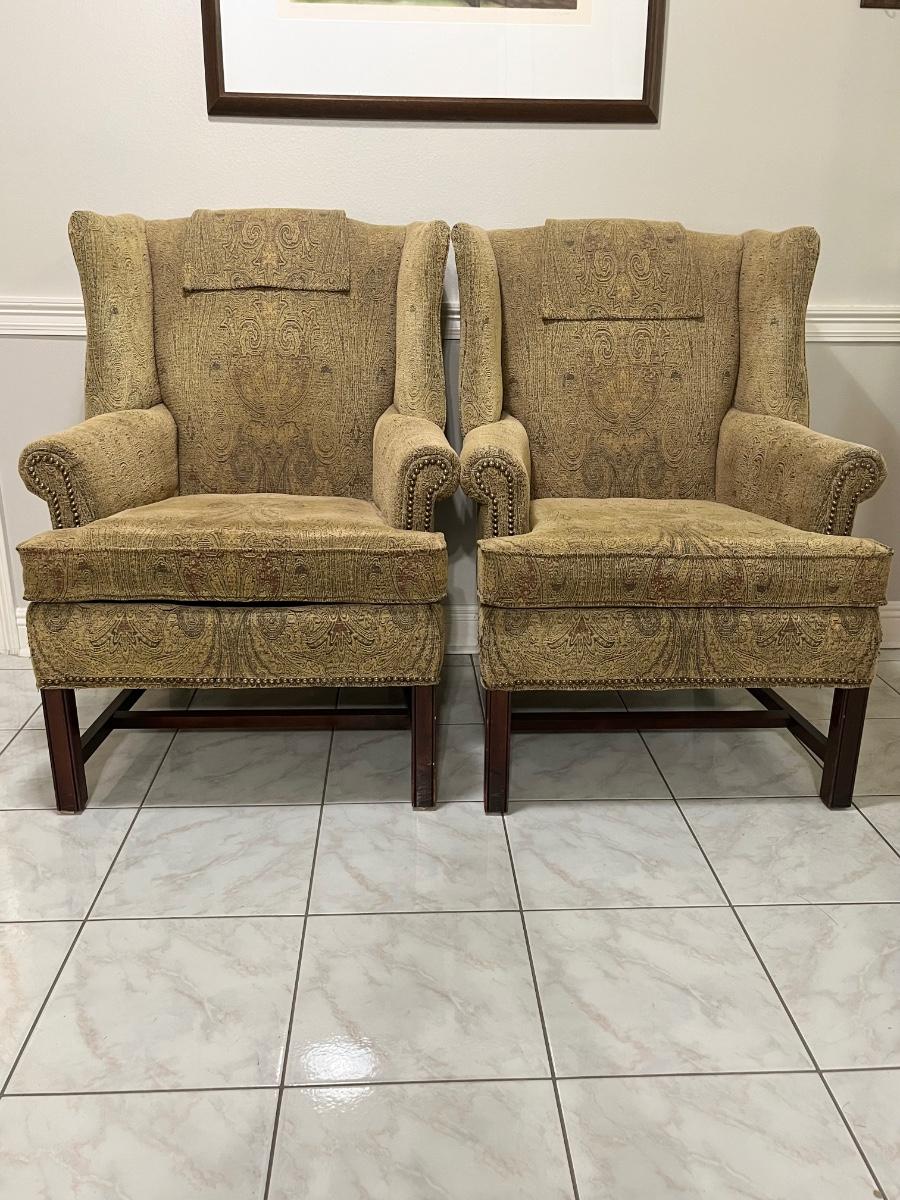 NORWALK FURNITURE ~ Pair (2) ~ Wing Back Chairs With Nailhead Design