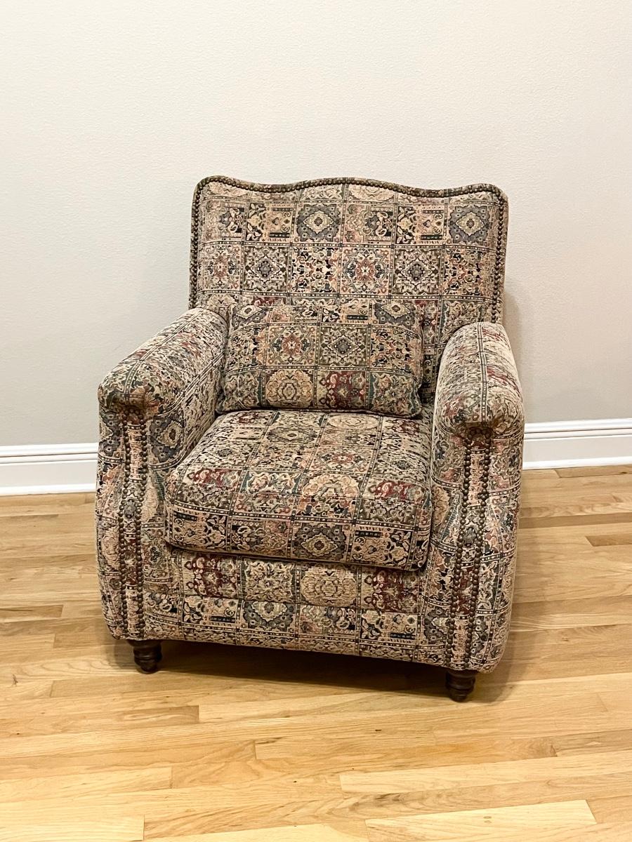NORWALK ~ Upholstered Accent Chair ~ Nailhead Lined ~ With Matching Ottoman