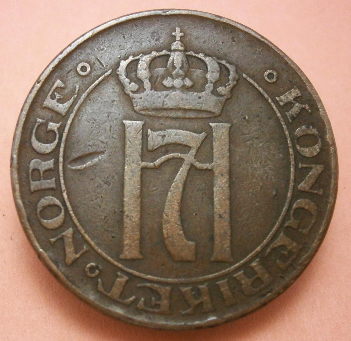 NORWAY 1922 5 ORE Copper Coin, 27 mm