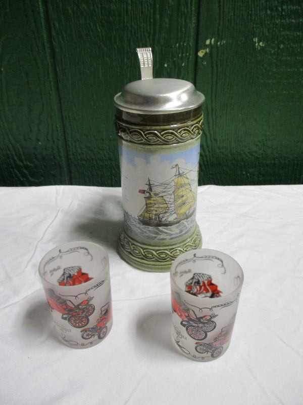 Norwood Germany Beer Stein & 2 Oldsmobile Glasses