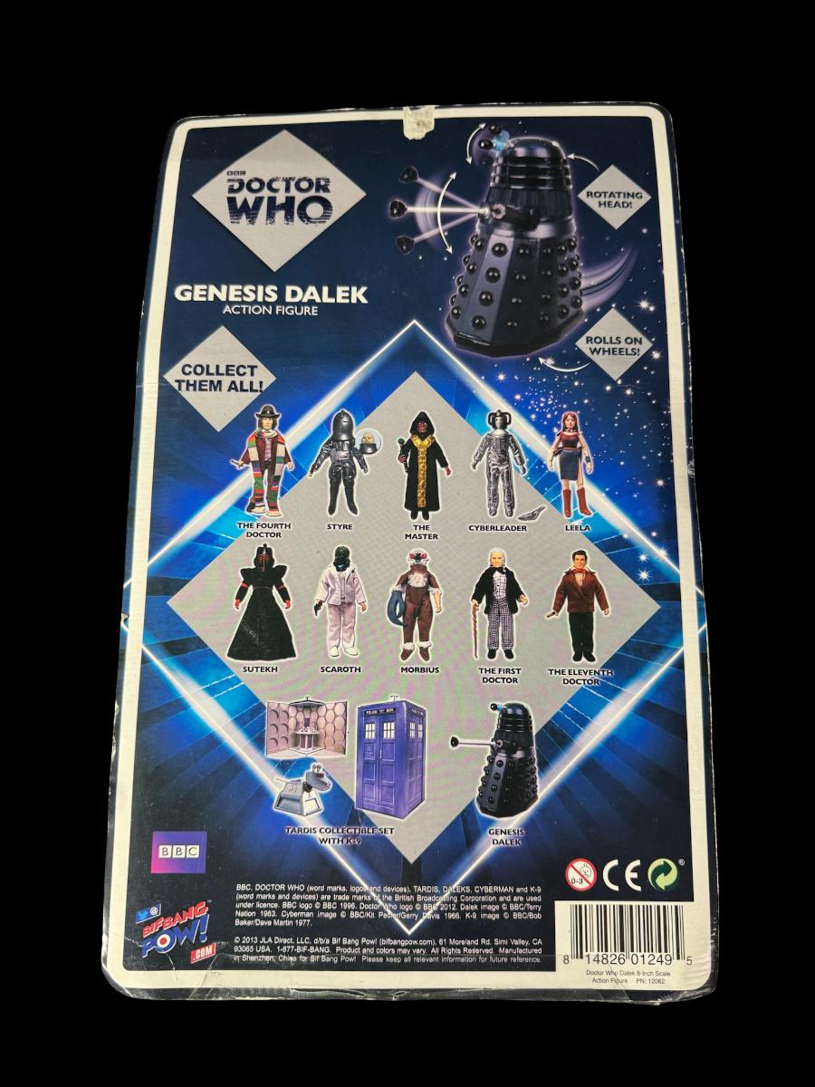 Based on the 1975 episode “Genesis of the Daleks.” This is an eight inch scale model. There is minimal storage related wear to the packaging. Pre-auction estimate: $75-$150.