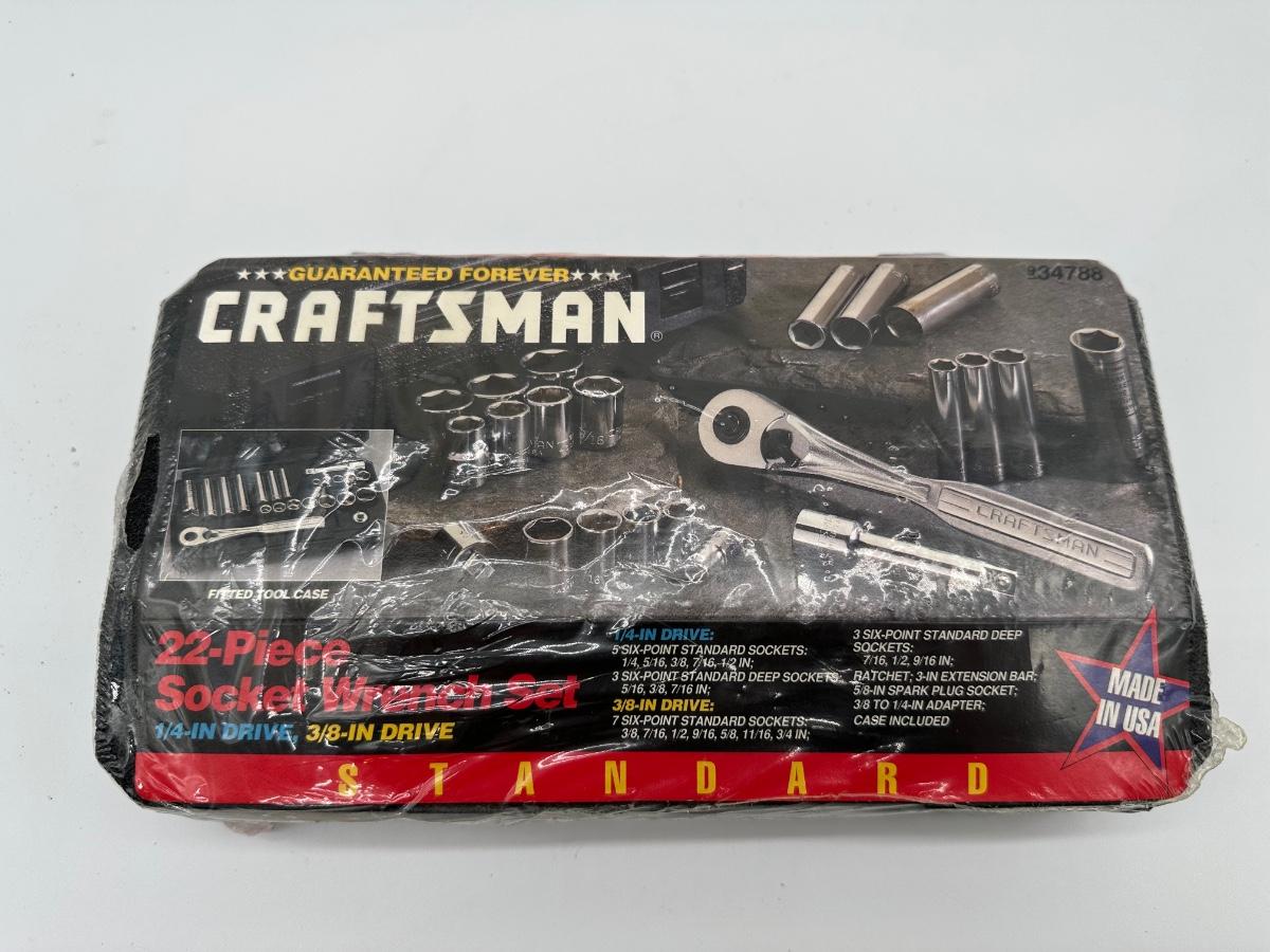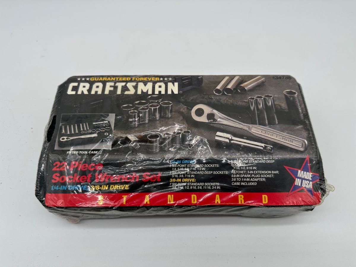 NOS Made In USA Craftsman 22-Piece Socket Wrench Set – 1/4″ & 3/8″ Drive, SAE