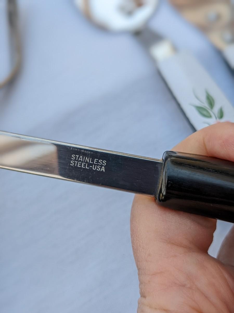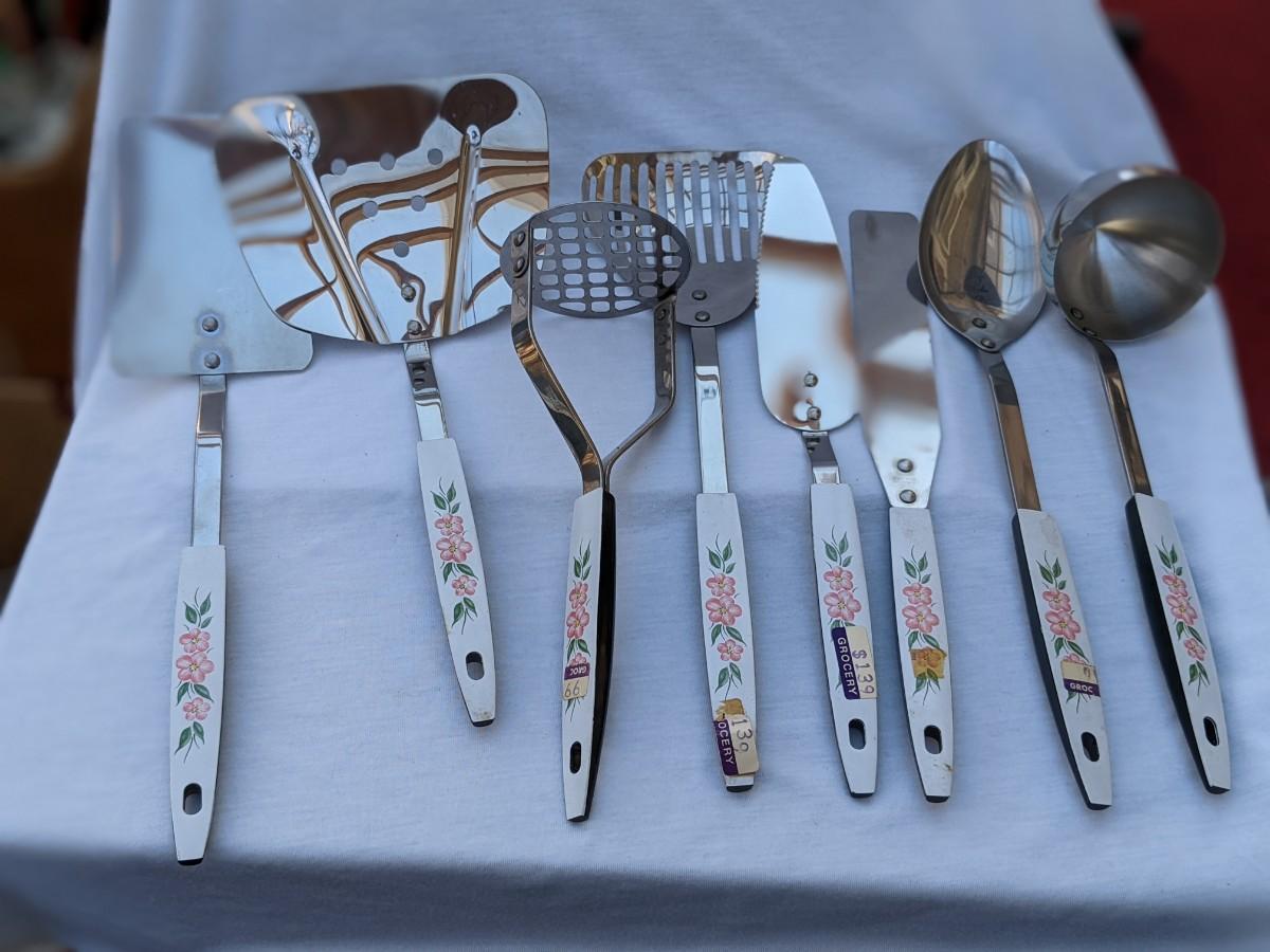 NOS MCM Kitchen Utensils Bakelite Handle Peach Blossoms Stainless USA