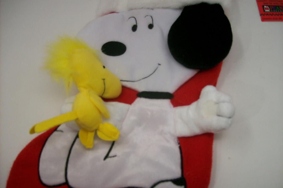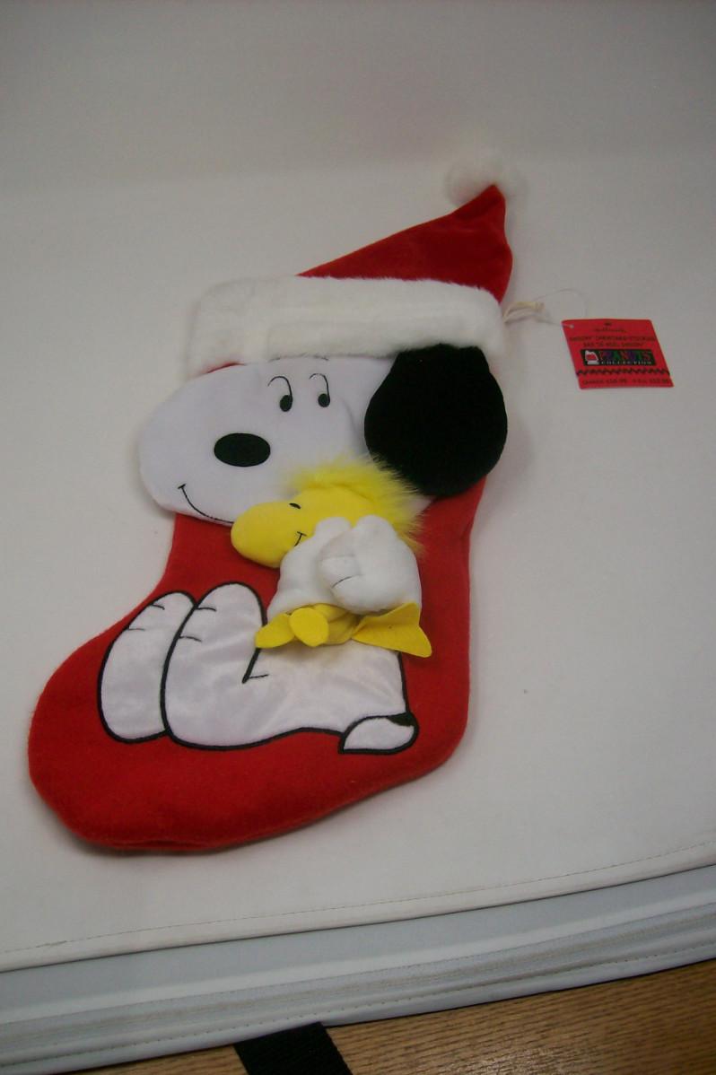 NOS SNOOPY Hugging Woodstock Christmas Stocking w/ Santa Hat