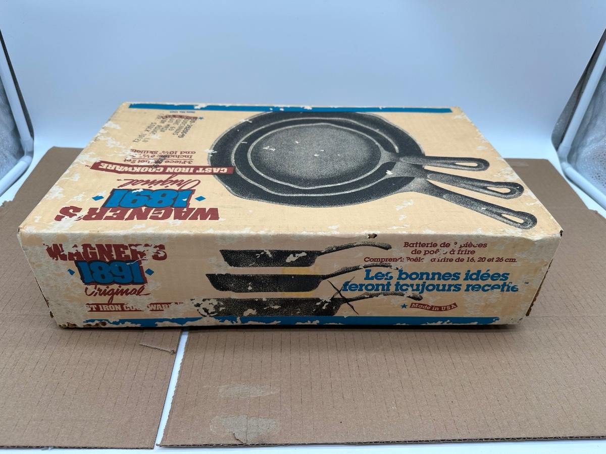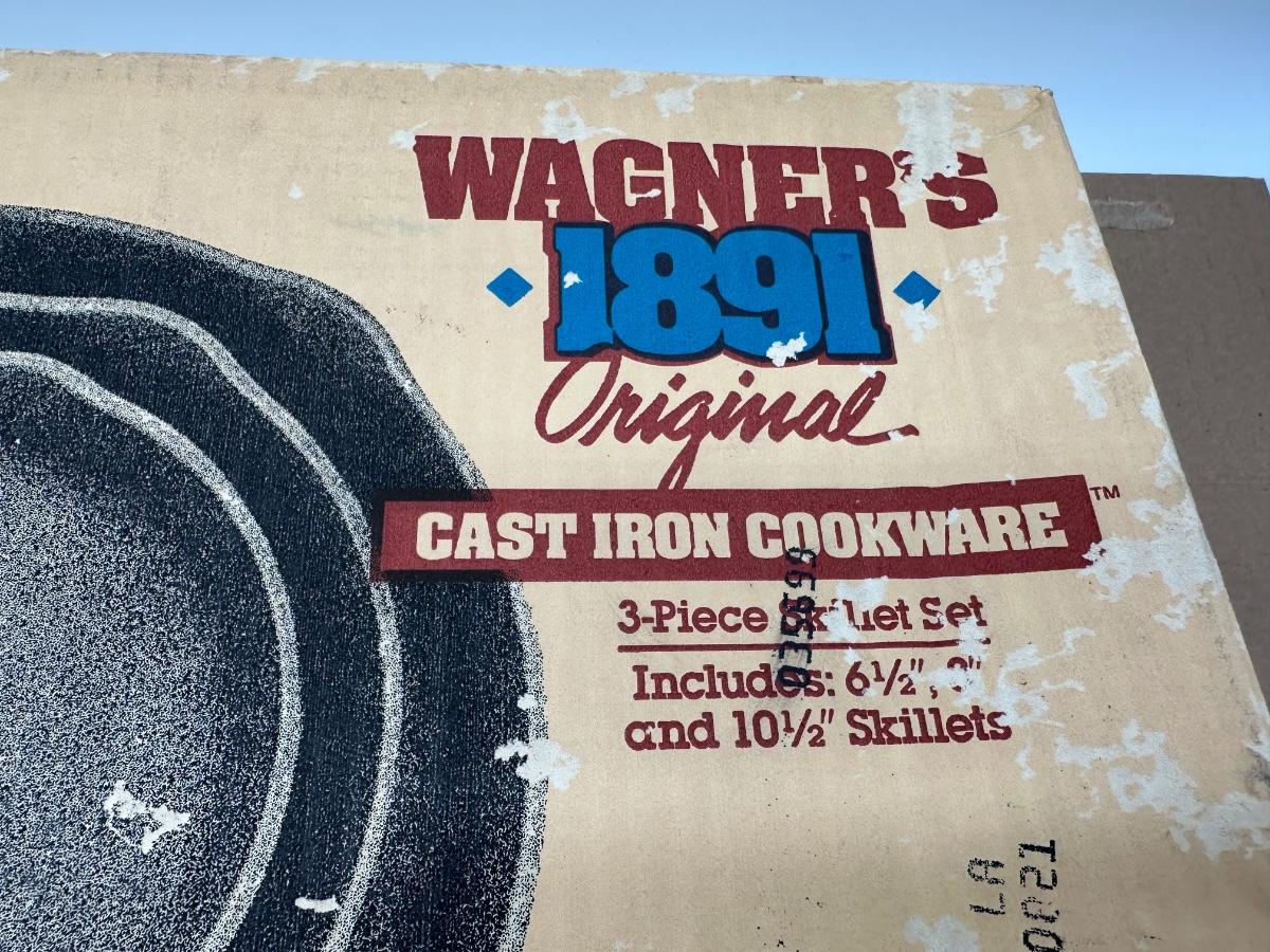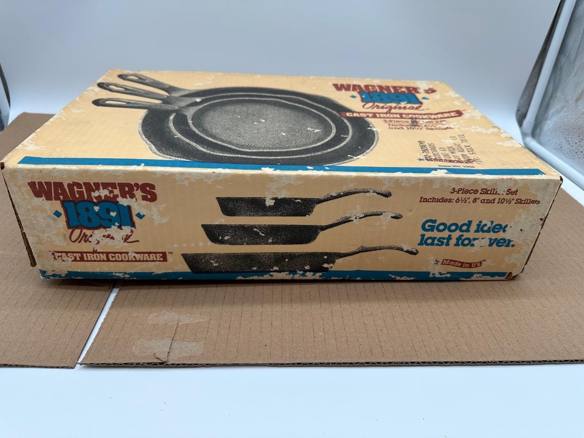 NOS Vintage Wagner’s 1891 Original Cast Iron Skillet Set – 3-Piece – In Original Box