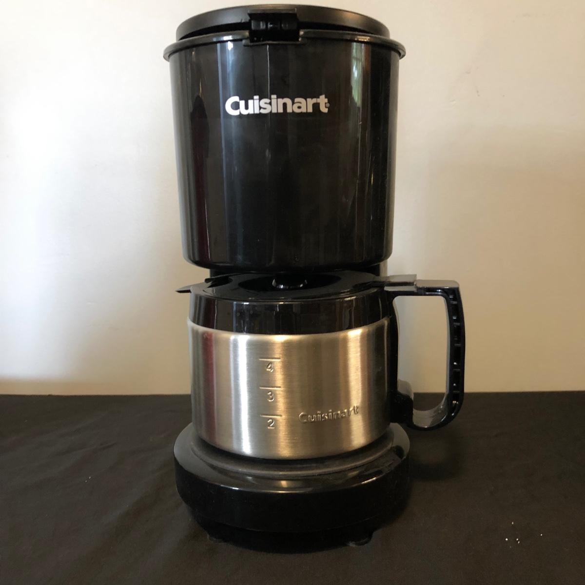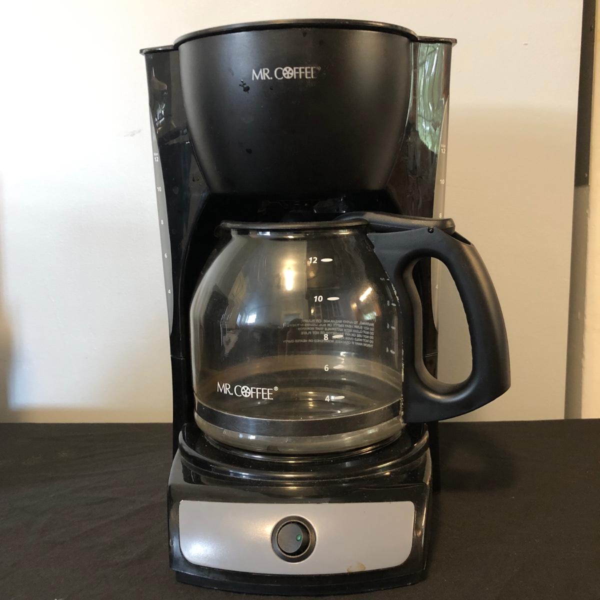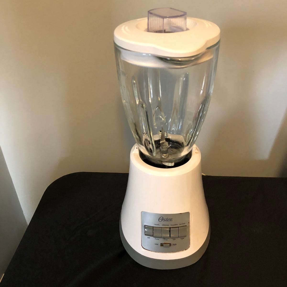 This kitchen appliance set includes a Nostalgia Air-Pop Popcorn maker with instructions. The Air-Pop is accompanied by a Cuisinart 4 cup coffee maker, a Mr. Coffee 12 cup coffee maker, and an Oster 6 cup blender. The blender measures 7” x 7.5” x 6”. When plugged in, each appliance powered on. Local pickup only.